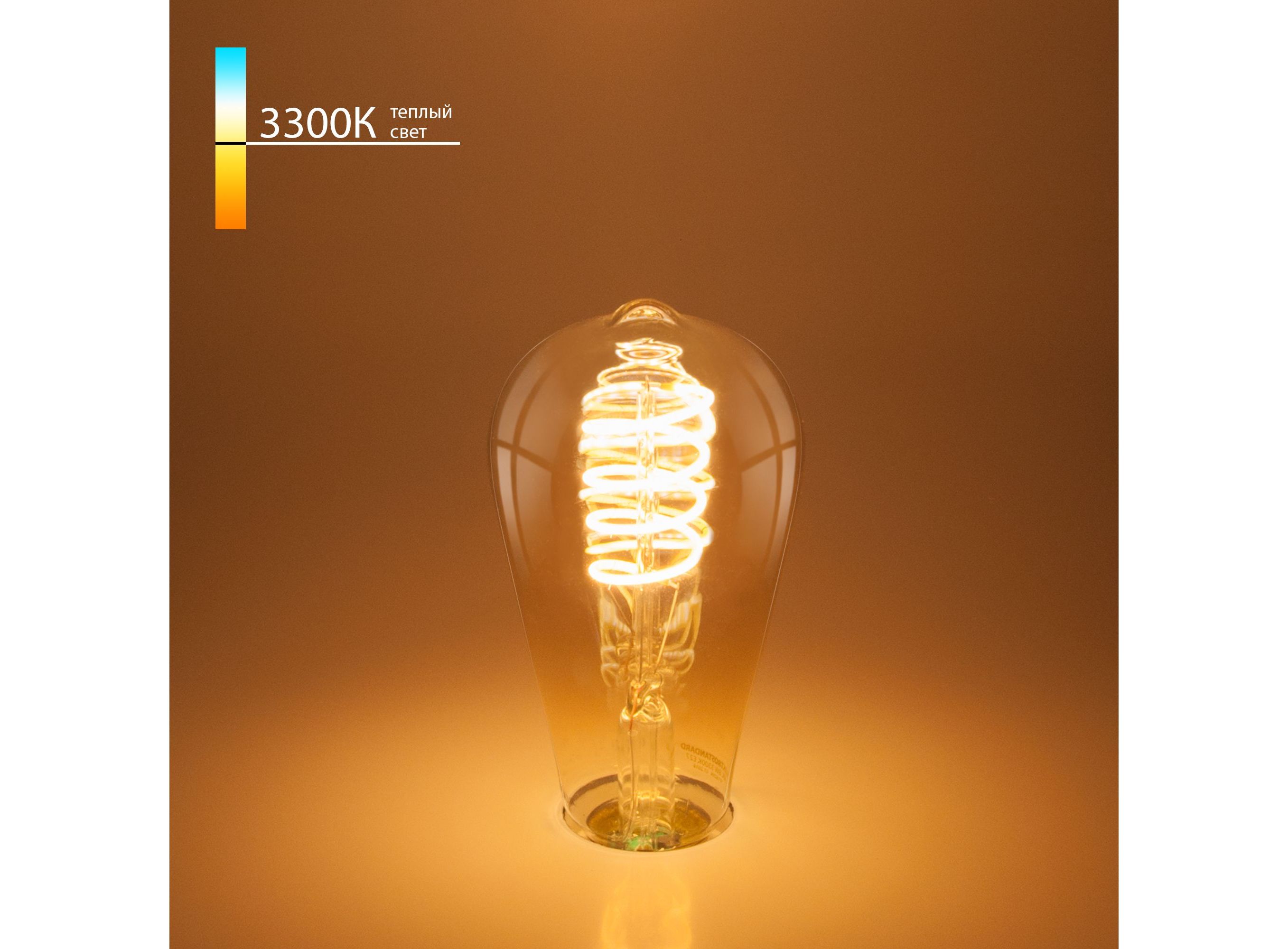 Филаментная светодиодная лампа ST64 8W 3300K E27 тонированная. Это вид светодиодных ламп, которые внешне максимально приближены к лампам накаливания. Они имеют полностью прозрачную стеклянную колбу и цоколь, а внутри расположены светодиоды вместо нити накала. <p> <p> Филаментная светодиодная лампочка с цоколем E27 и размерами 145 мм по высоте и диаметром в 64 мм обладает мощностью в 12 W. Цветовая температура – 3300 К, т.е. теплый свет близкий к цвету Солнца. Ориентировочный срок службы составляет 20000 ч. Изделие рассчитано на использование в сети с переменным напряжением в 220-240В. <p> <p>