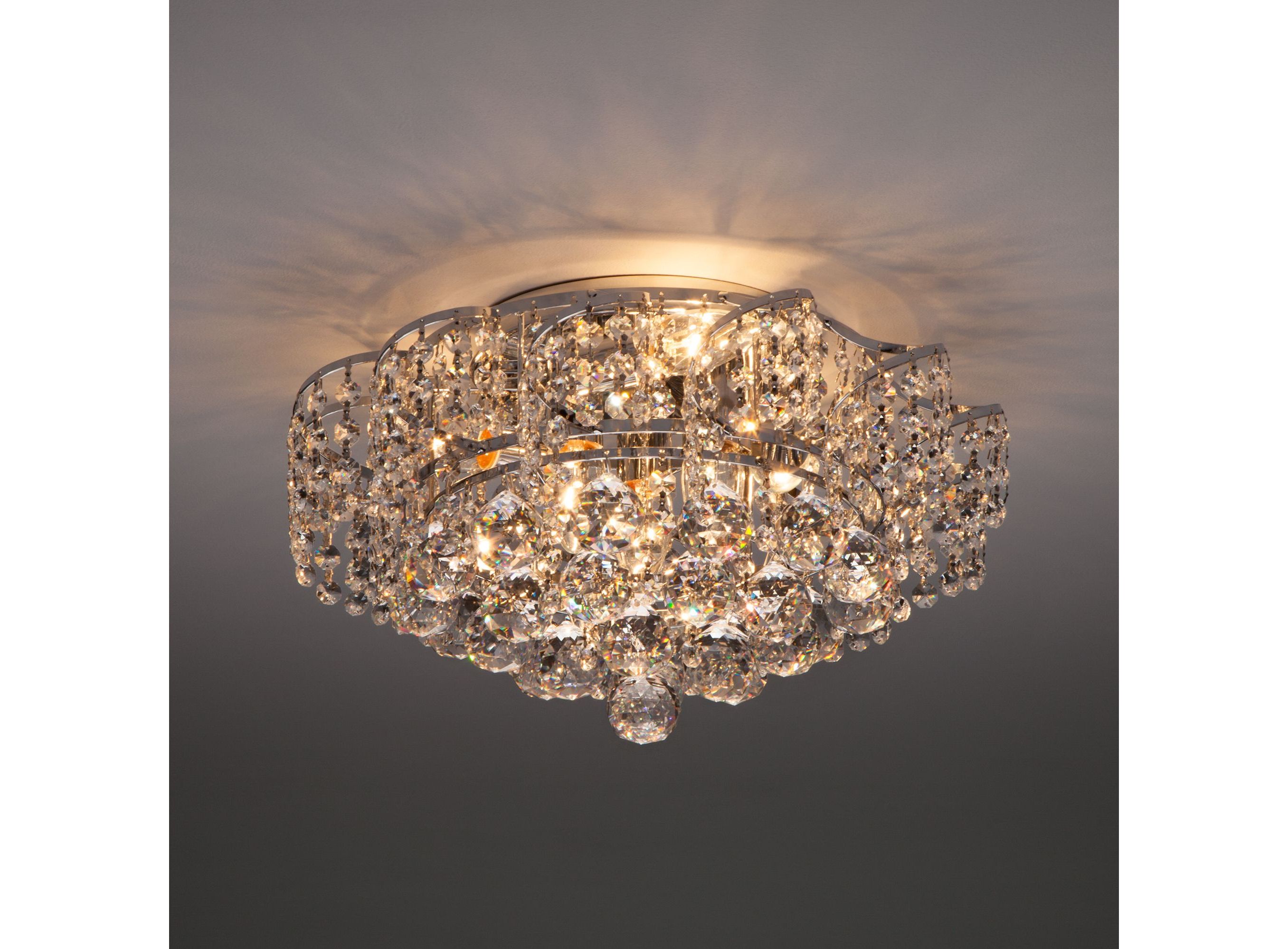 <p>Выразительная хрустальная люстра на 6 рожков в цвете хром преобразит потолочное пространство и создаст в вашем помещении полноценное освещение на площади 29 м кв. Изящные формы и классический стиль добавят вашей гостиной утонченного аристократизма.</p> <p>Люстра украшена декоративным хрусталем, который переливается на свету искристыми завораживающими бликами. Имеет сменные лампы с цоколем E27 с максимальной мощностью 60 Вт. В производстве потолочной люстры использовали особое стекло с эффектной огранкой и высококачественный металл с надежным защитным покрытием.</p>