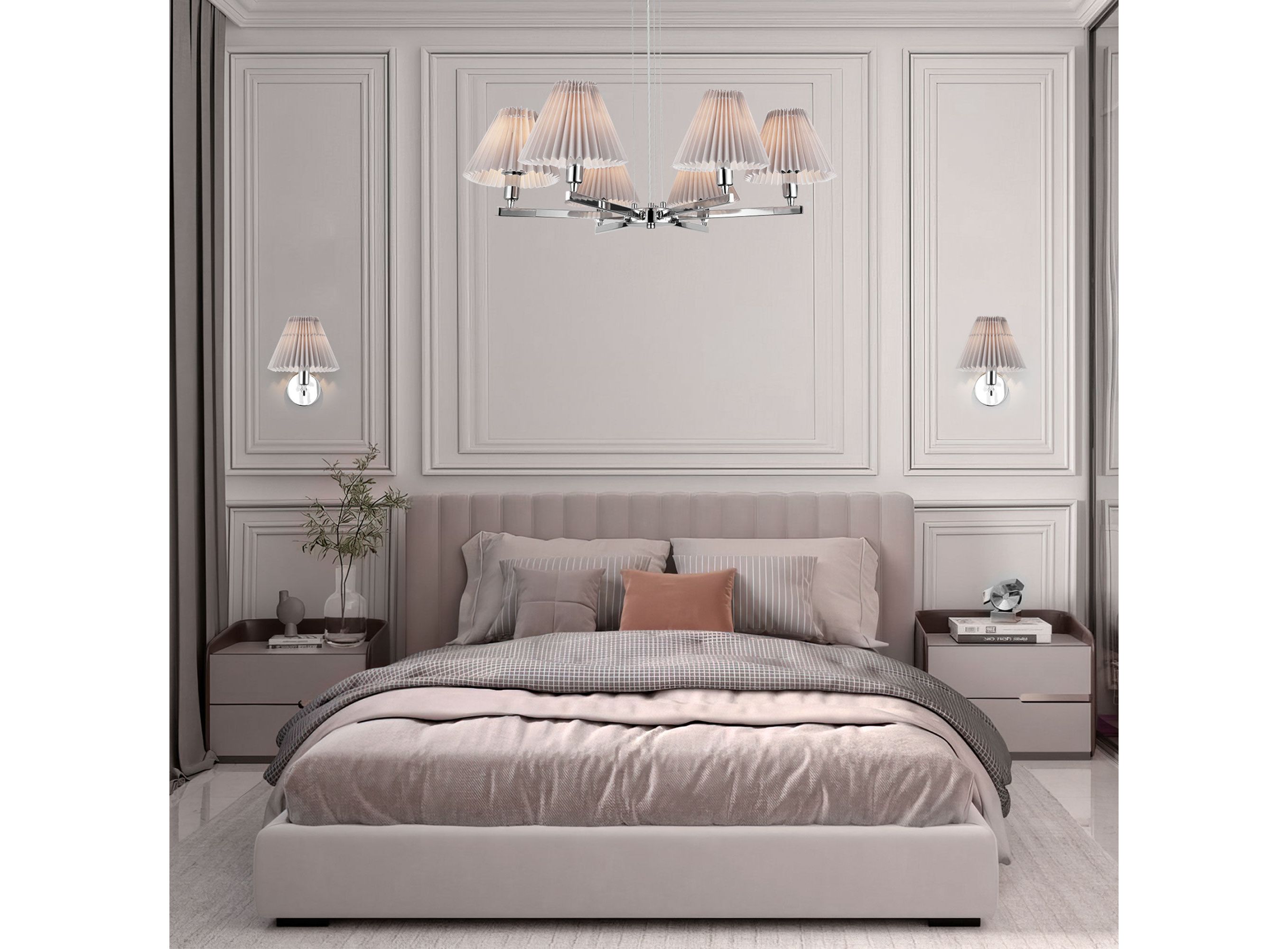 Подвесная люстра с абажурами 60136/6 хром/серый