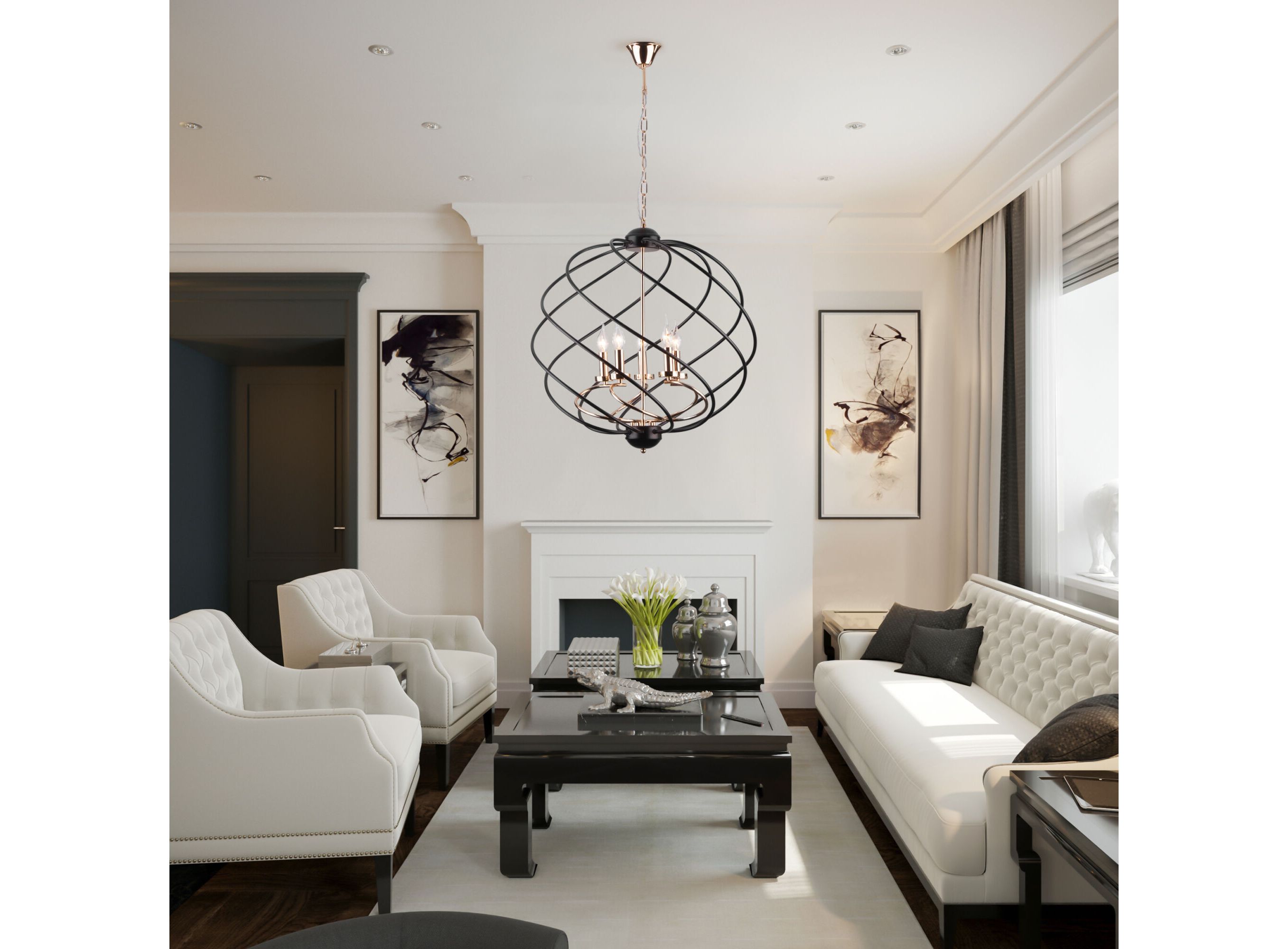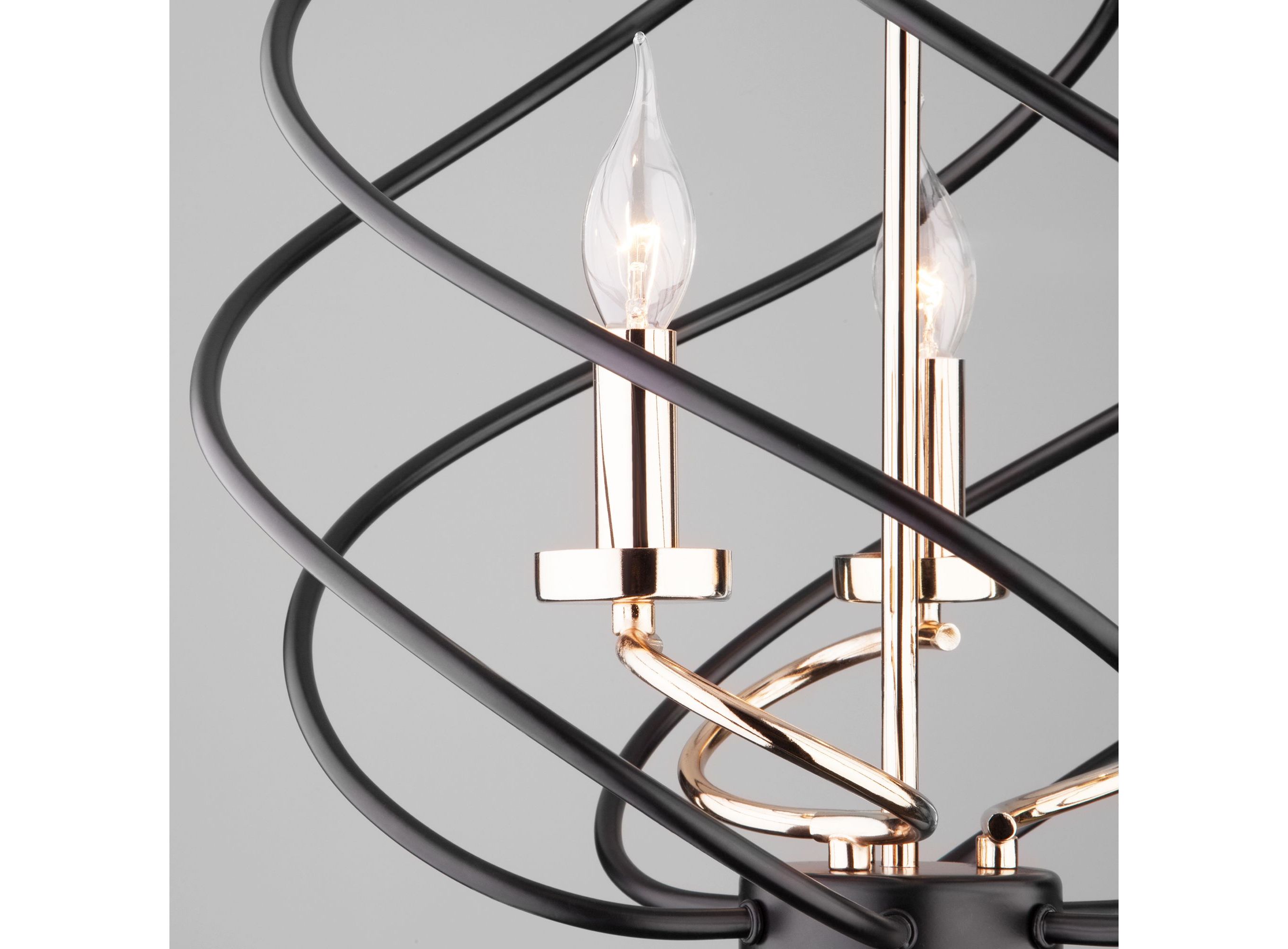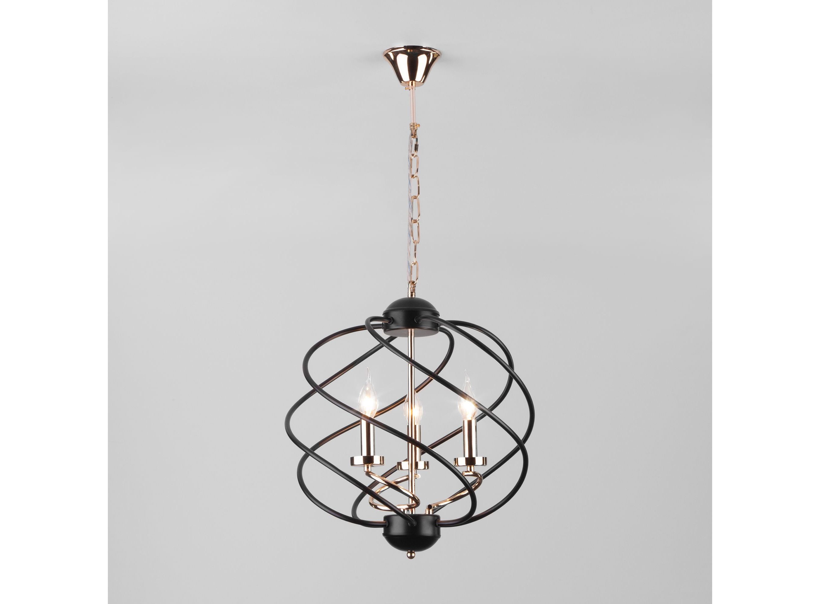 <p>Подвесной светильник 60105/3 в черном цвете с оригинальным дизайном предназначен для создания дополнительного освещения и акцентной подсветки в современных интерьерах. Светильник со сменными лампами Е14 создаст качественное освещение на площади 13 м кв. для кухни, зала, кабинета и других местах. Трехрожковый светильник без плафона заключенный в спиральный металлический шар с открытыми патронами, гармонично смотрится с лампами свеча и свеча на ветру, такой дизайн увеличивает угол рассеивания светового потока.</p>