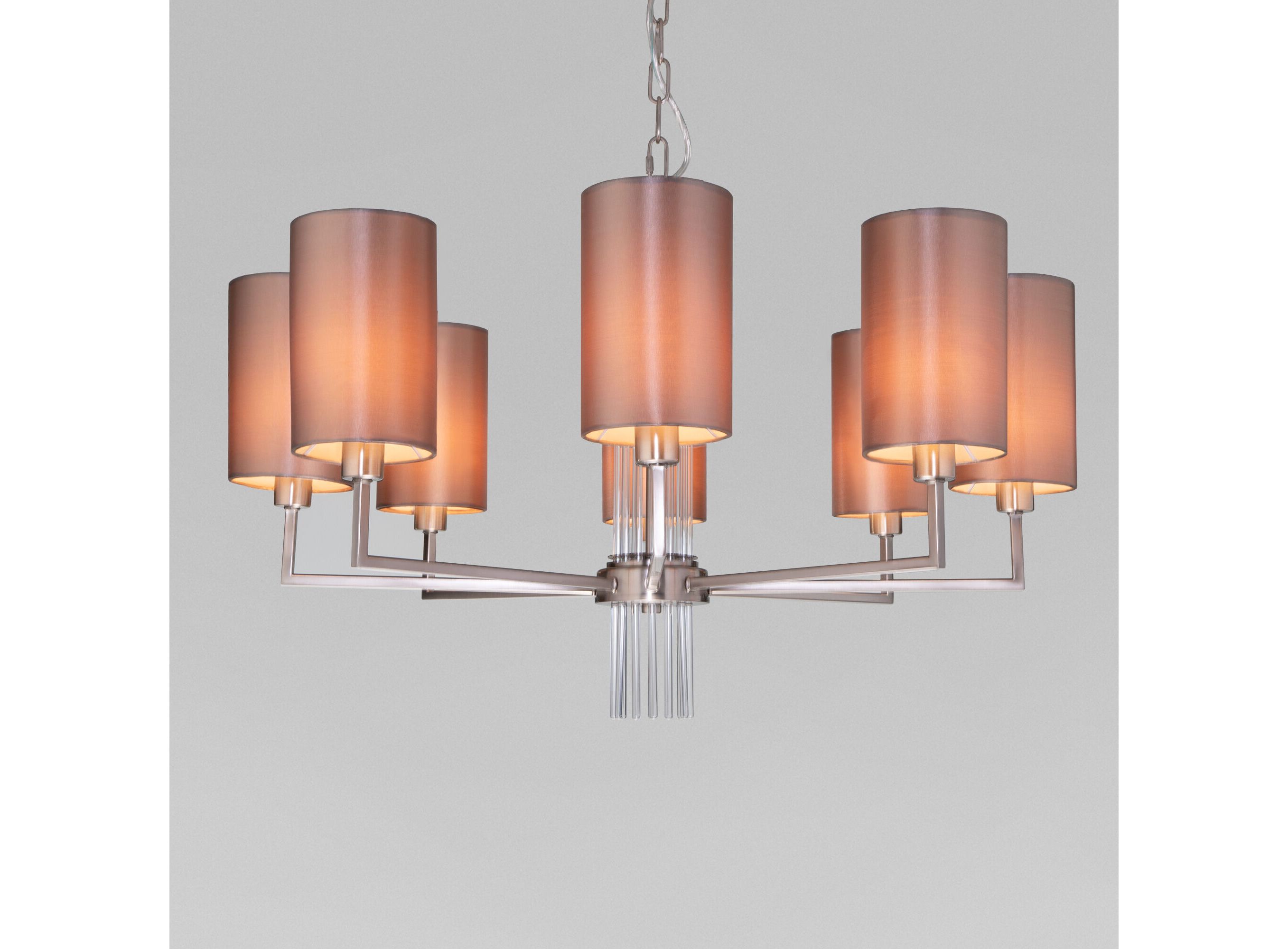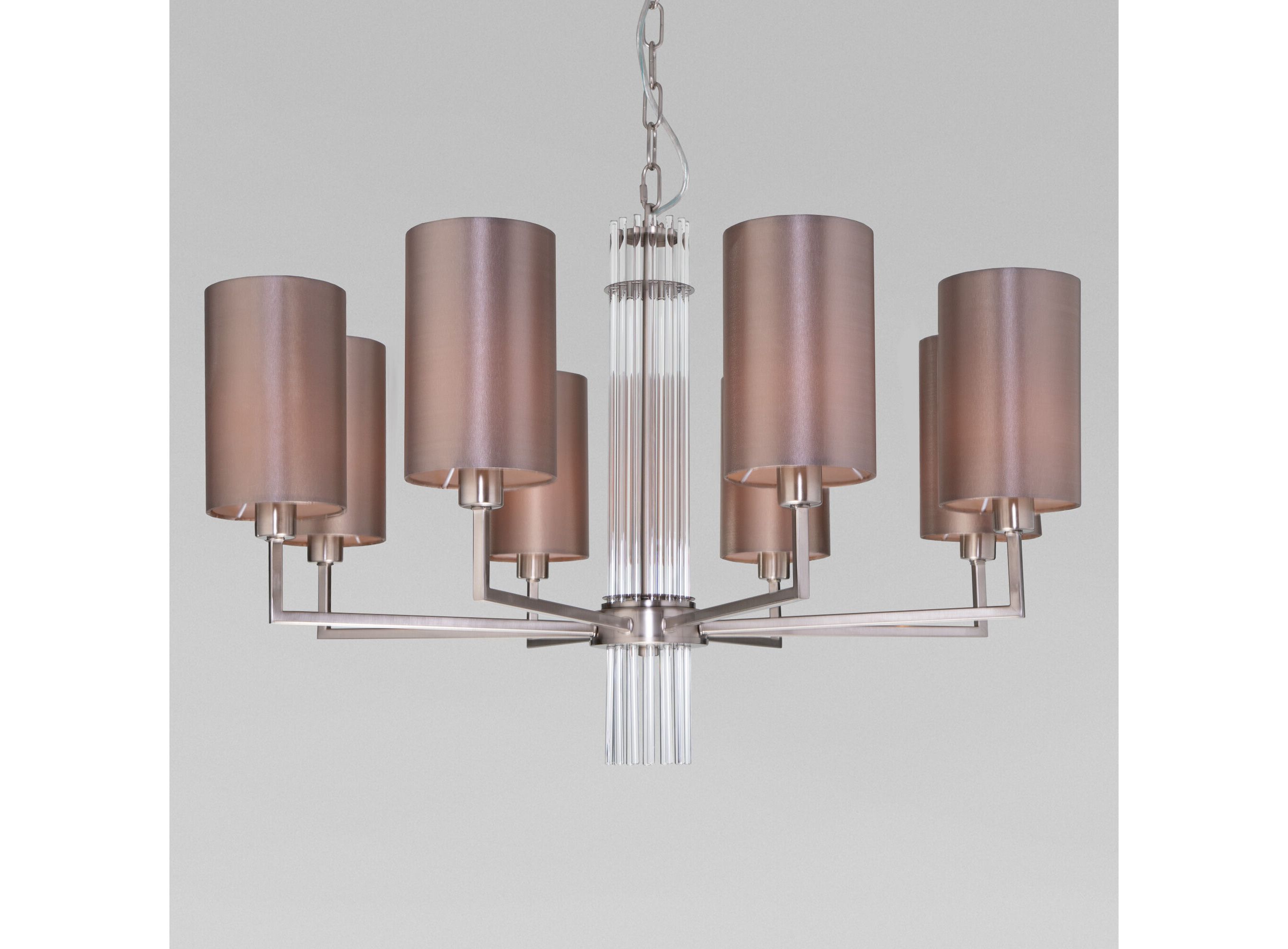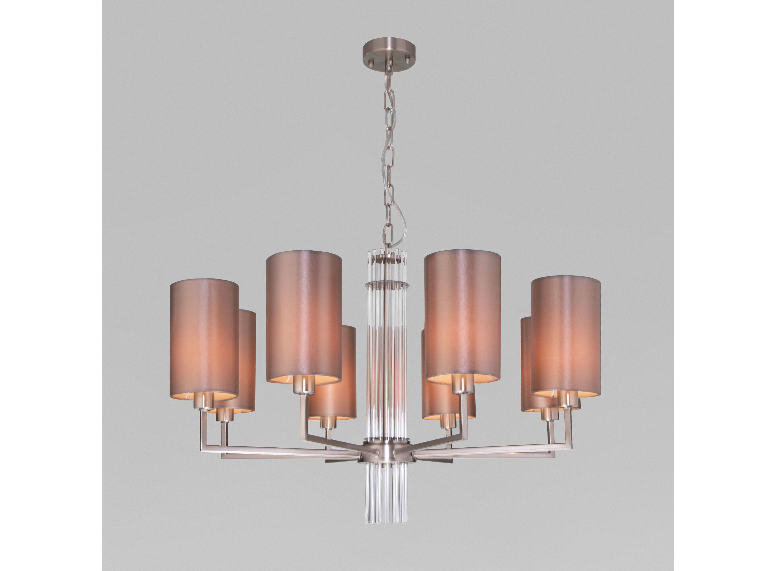 <p>Подвесная люстра 60134/8 никель предназначена для создания основного освещения в современных и классических интерьерах, подходит для различных типов помещений: гостиная; спальня и рассчитана на площадь освещения 14 м&sup2;.</p> <p>Роскошная люстра оснащена патронами с цоколем Е14, которые рассчитаны на максимальную мощность ламп 40 Вт. Люстра украшена эффектным декором из стекла и дополнена выразительными тканевыми абажурам. Арматура изготовлена из высококачественного металла с надежным защитным покрытием.</p>