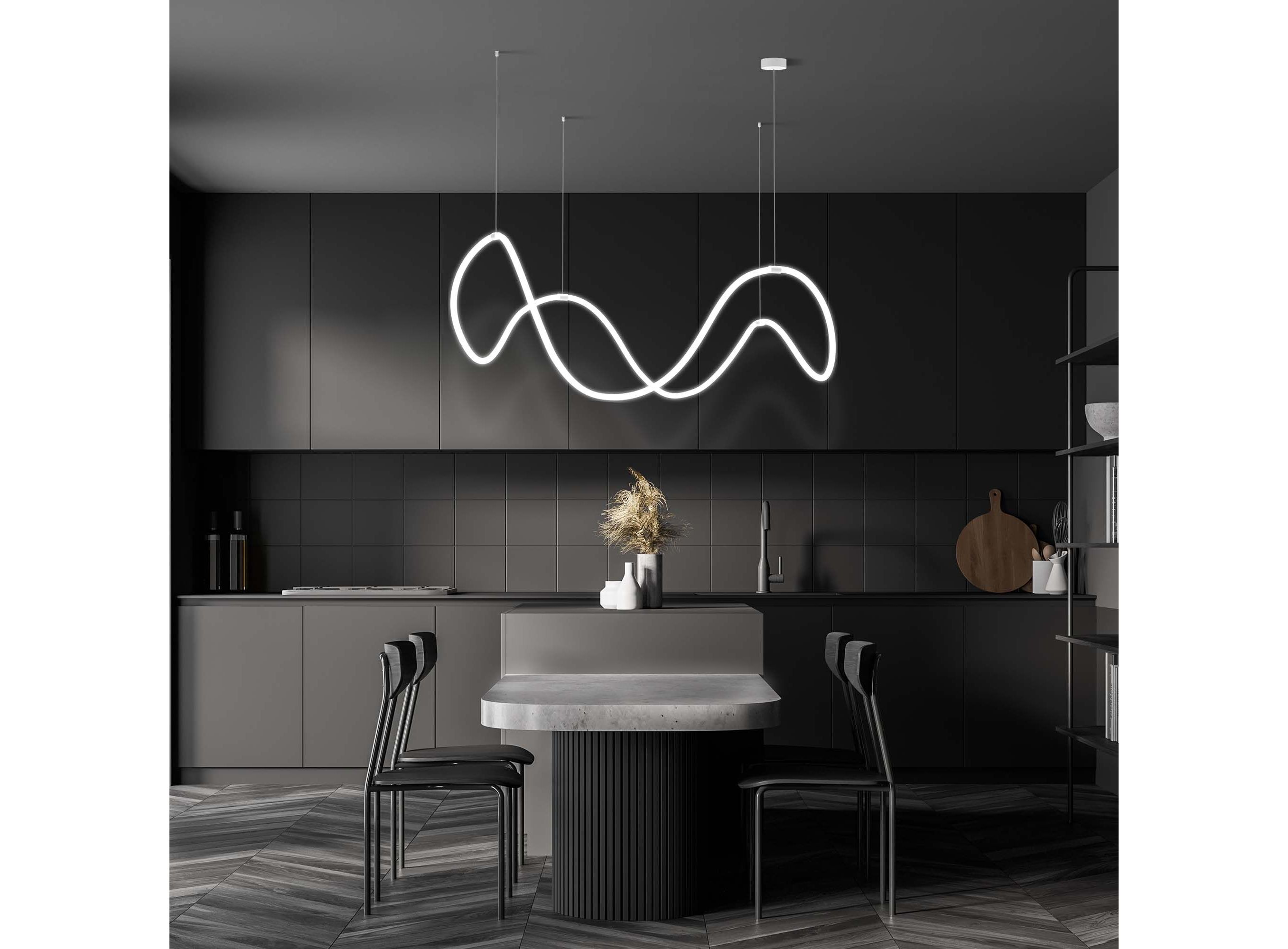 <p>Необычная люстра из гибкого неона Full Light с пультом управления способна в корне изменить привычное восприятие интерьера. Благодаря гибкости неон можно расположить совершенно в разных вариациях. <br><br>Крепление в белом цвете можно установить в любых точках потолочного пространства и создать необходимую высоту светильника. Световой элемент за счет двойной LED-ленты излучает свет всей своей поверхностью, угол света 360&deg;. С помощью пульта управления можно регулировать яркость и цветовую температуру, доступную в трех значениях: 3300, 4200 и 6500 К.</p>