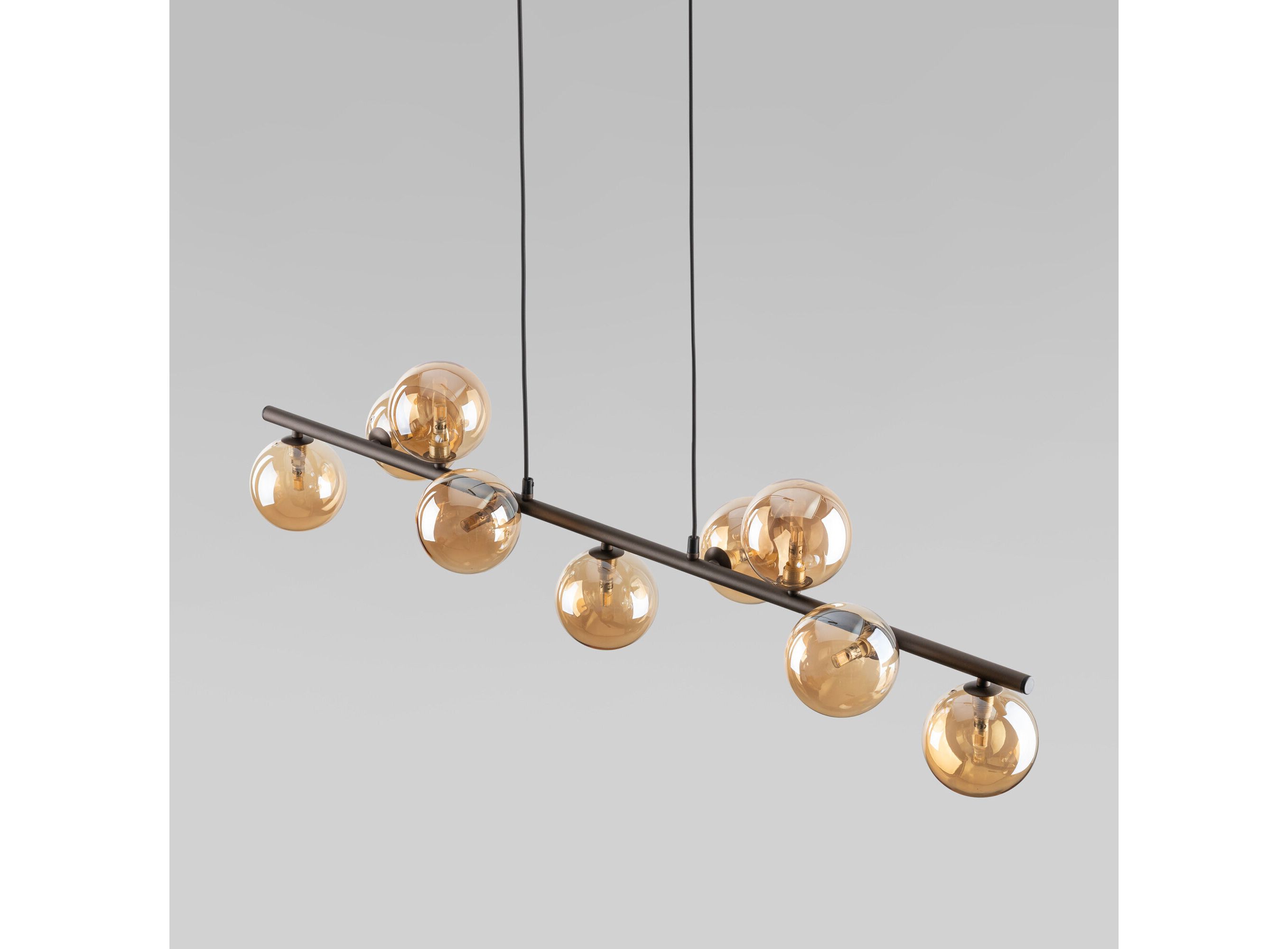 <p>Светильник с круглыми стеклянными плафонами оснащен системой регулировки высоты подвеса, позволяющей размещать изделие на разных уровнях, уменьшая или увеличивая угол рассеивания светового потока. Данный светильник легко устанавливается на потолке при помощи монтажной планки.</p>
