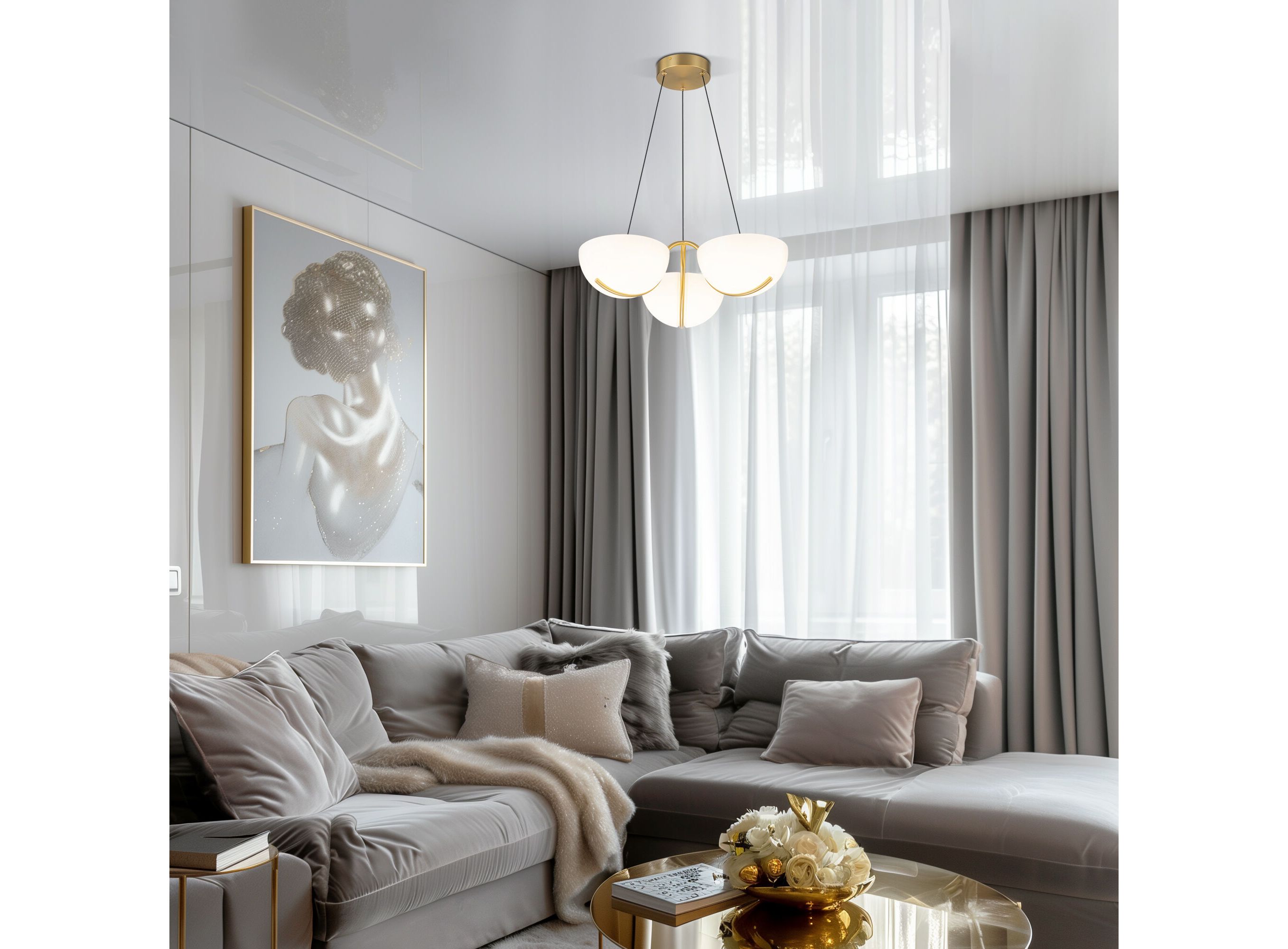 <p>В коллекции представлены подвесные светильники и бра, чьи глянцевые плафоны совершенство полусферы. Декоративные дуги золотого цвета придают моделям уникальность, подчеркивая их утонченность и современную эстетику. Каждый элемент — это гармония, соединяющая функциональность и искусство.</p>