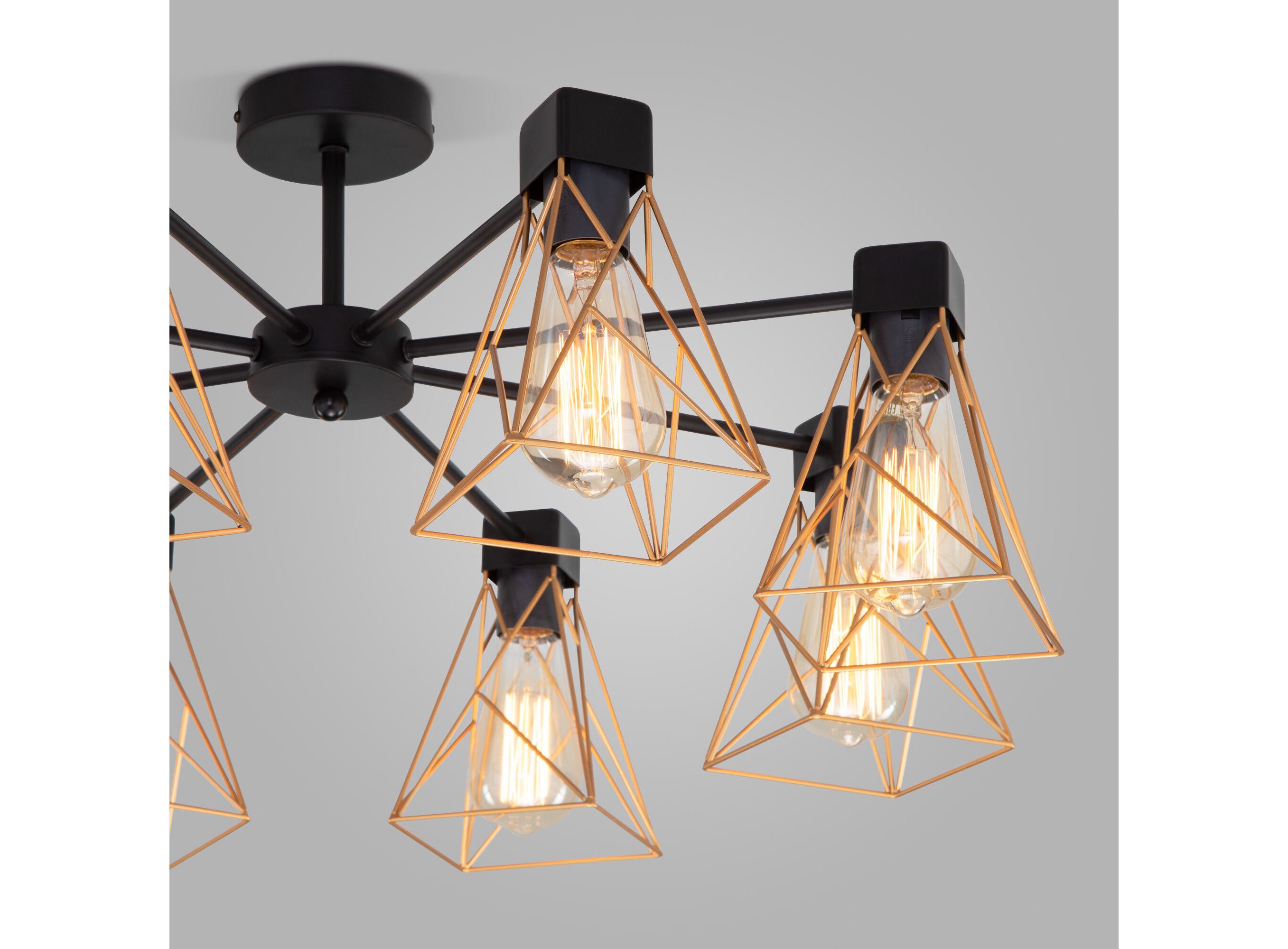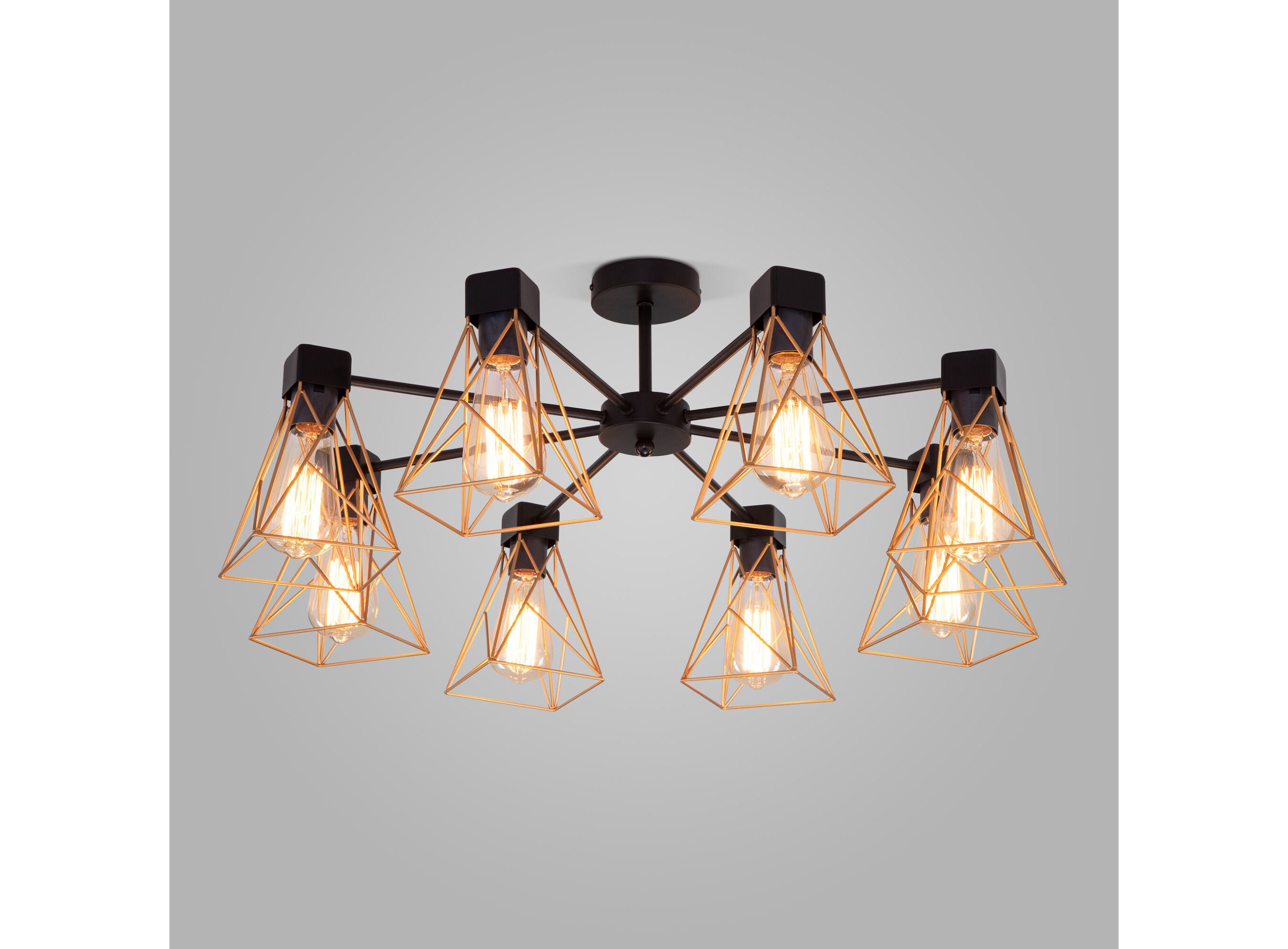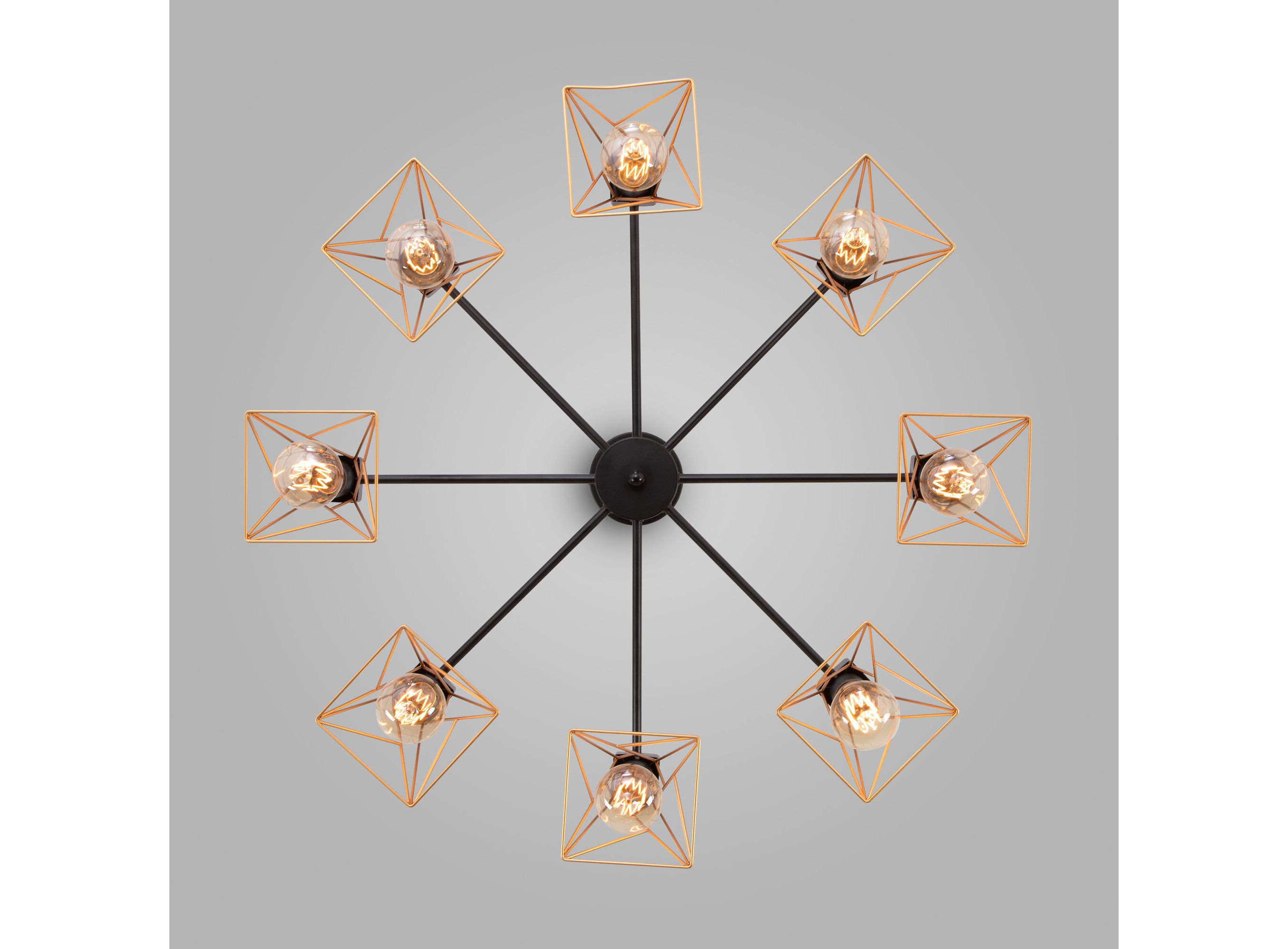 <p>Преобразить ваше потолочное пространство и организовать качественное освещение на площади 36 м кв. поможет стильная люстра в стиле loft. Строгий внешний вид и конструктивная простота форм внесут в современный интерьер индустриального стиля, а гармоничный цветовой тандем из латунь и матового черного подчеркнут его.</p> <p>В восьмирожковой люстре используются сменные лампы с цоколем E27, рассчитанные на максимальную мощность 60 Вт. Потолочный светильник оснащен металлическими плафонами. В производстве люстры использован высококачественный металл с надежным защитным покрытием.</p>
