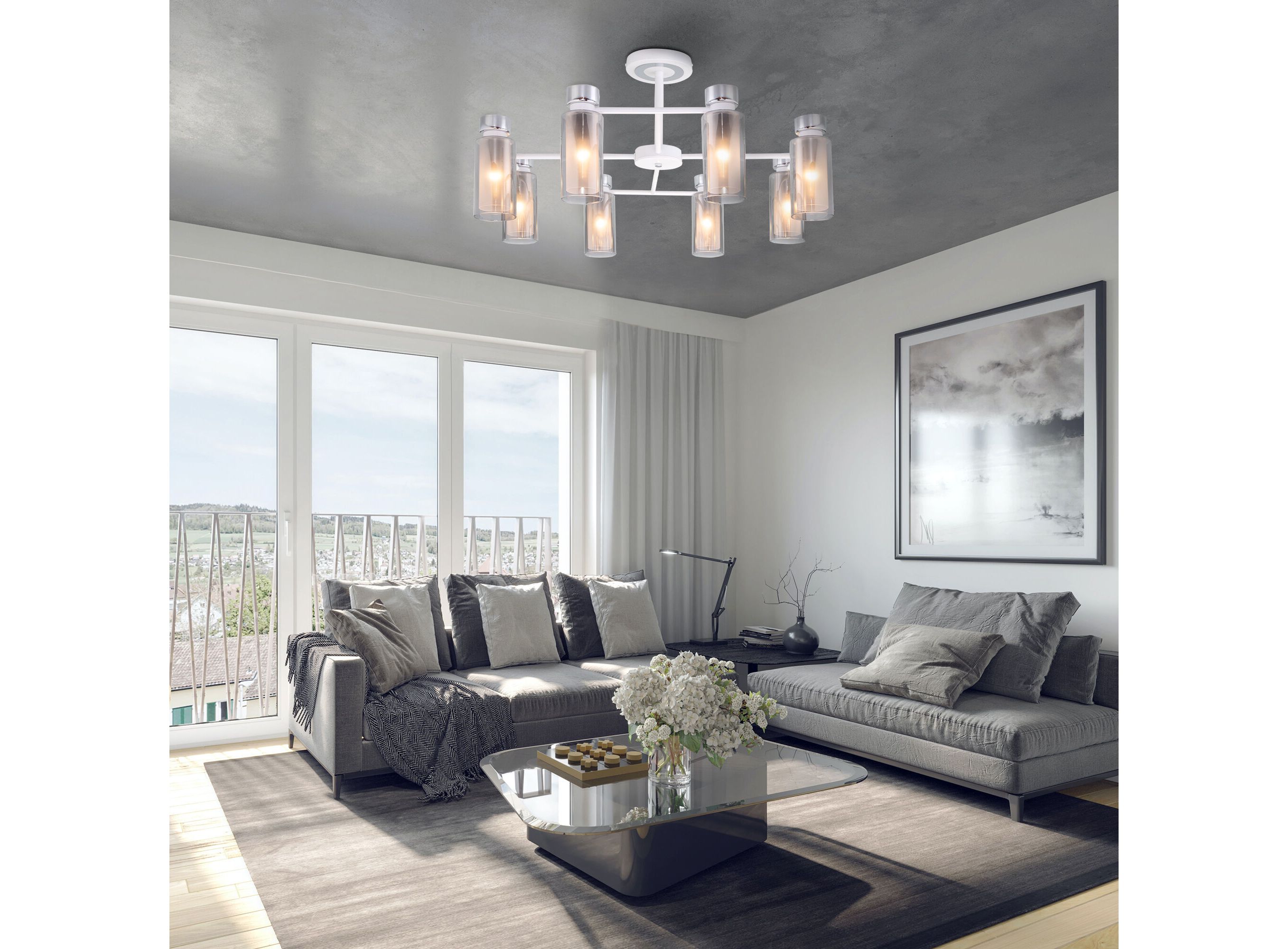 <p>Потолочная люстра со стеклянными плафонами 70115/8 белый предназначена для создания основного освещения в современных и классических интерьерах, подходит для различных типов помещений и рассчитана на площадь освещения 24 м².</p>