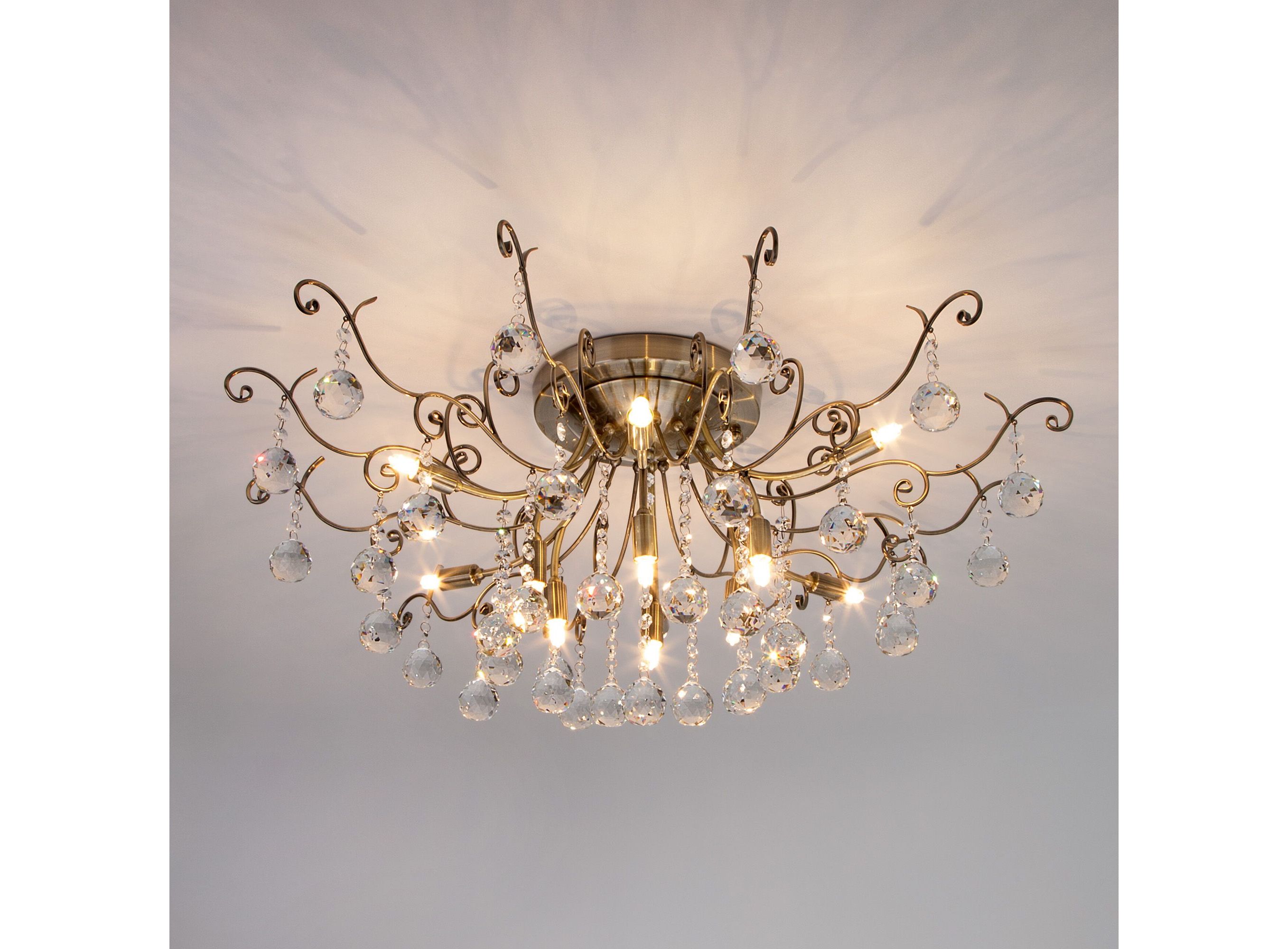 Потолочная люстра с хрусталем 10042/12 античная бронза