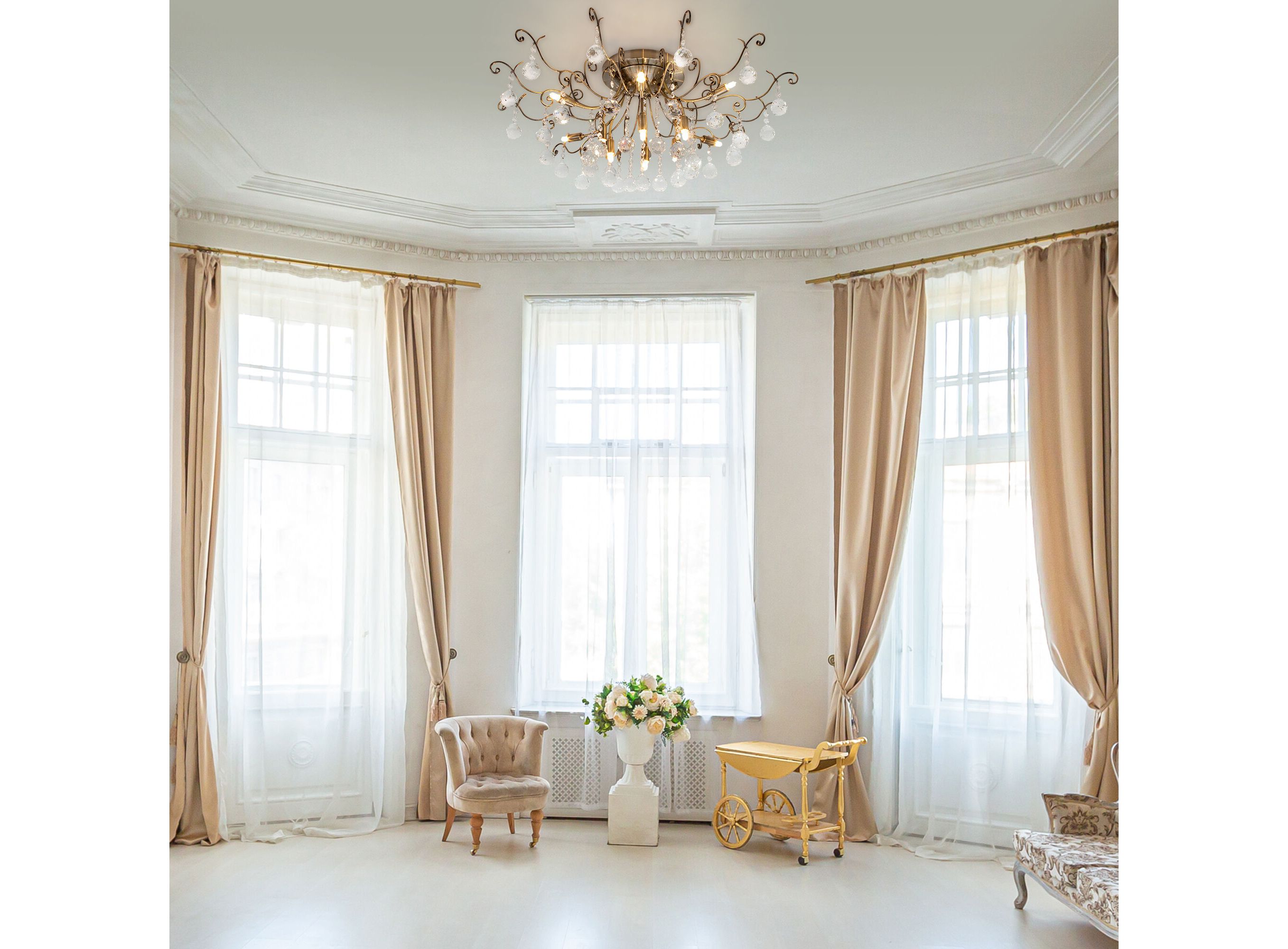 <p>Изящные формы и классический стиль добавят вашей гостиной утонченного аристократизма. Люстра украшена декоративным хрусталем, который переливается на свету искристыми завораживающими бликами. Имеет сменные лампы с цоколем G9 с максимальной мощностью 20 Вт.</p>