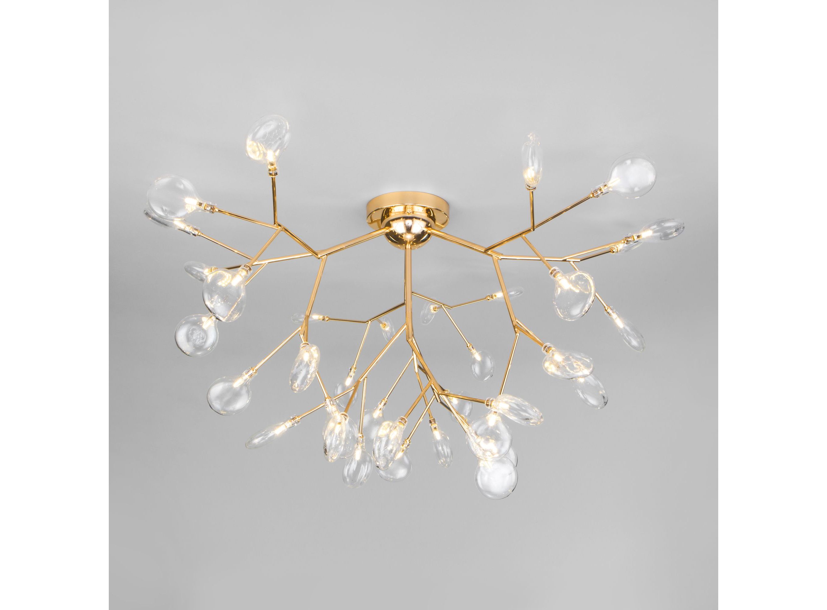 <p>Дизайнерская люстра имеет 36 рожков и оснащена патронами с цоколем G4, которые рассчитаны на максимальную мощность ламп 3 Вт. Люстра украшена эффектными стеклянными плафонами в форме лепестков. Арматура изготовлена из высококачественного металла с надежным защитным покрытием.</p>