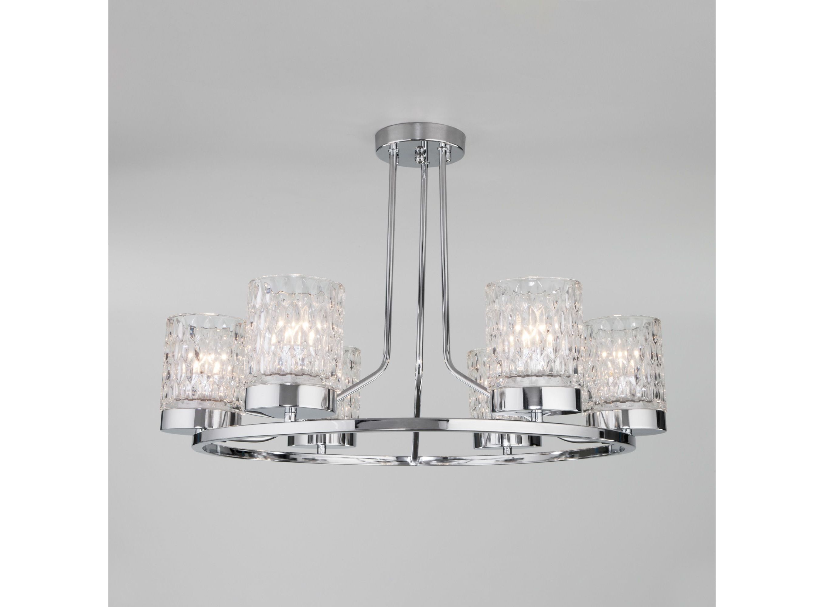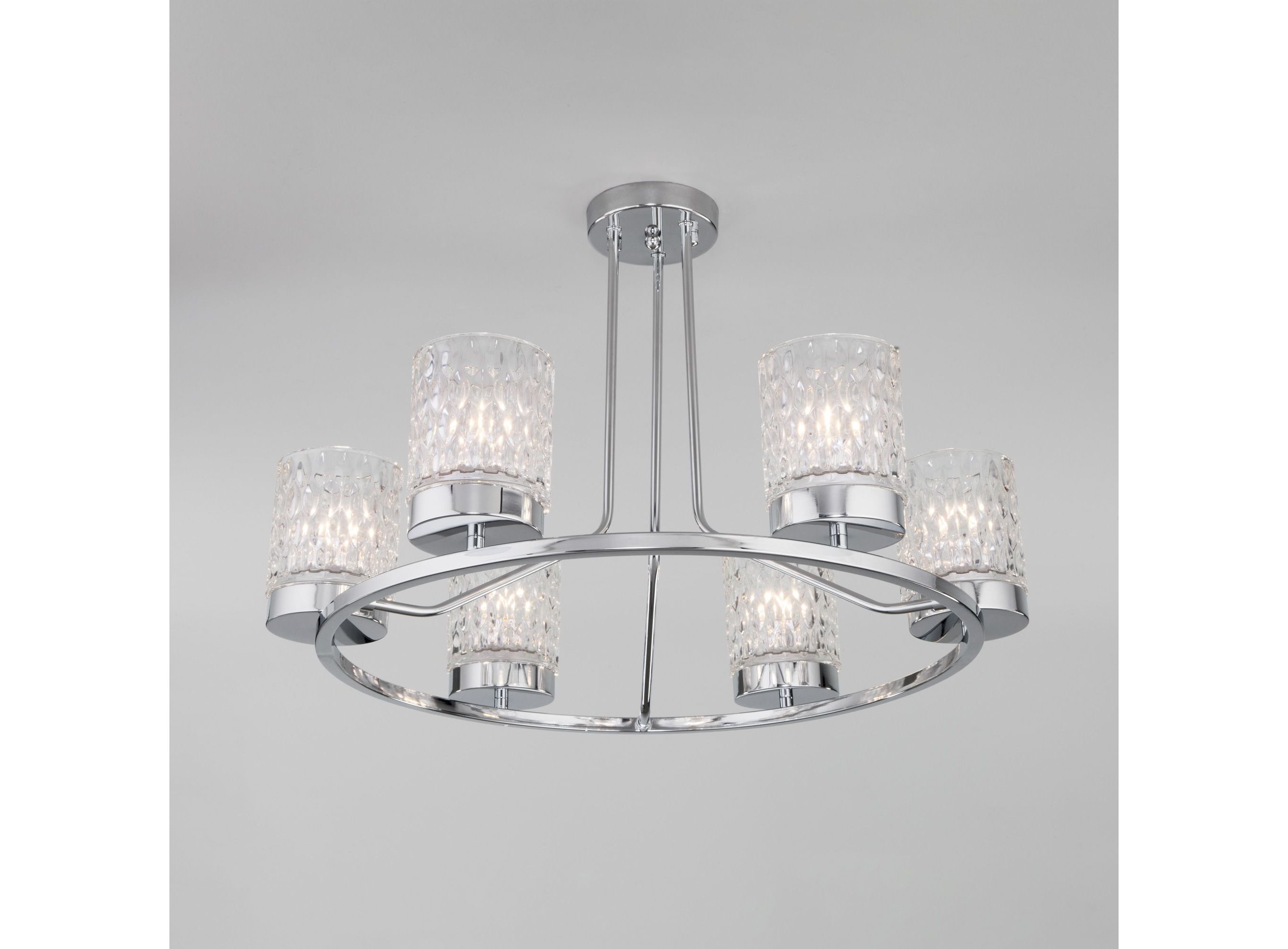 <p>Организовать качественное освещение вам поможет эффектная потолочная люстра со стеклянными плафонами в цвете хром. Простые минималистичные формы и сдержанные тона станут идеальным дополнением для вашего помещения.</p>