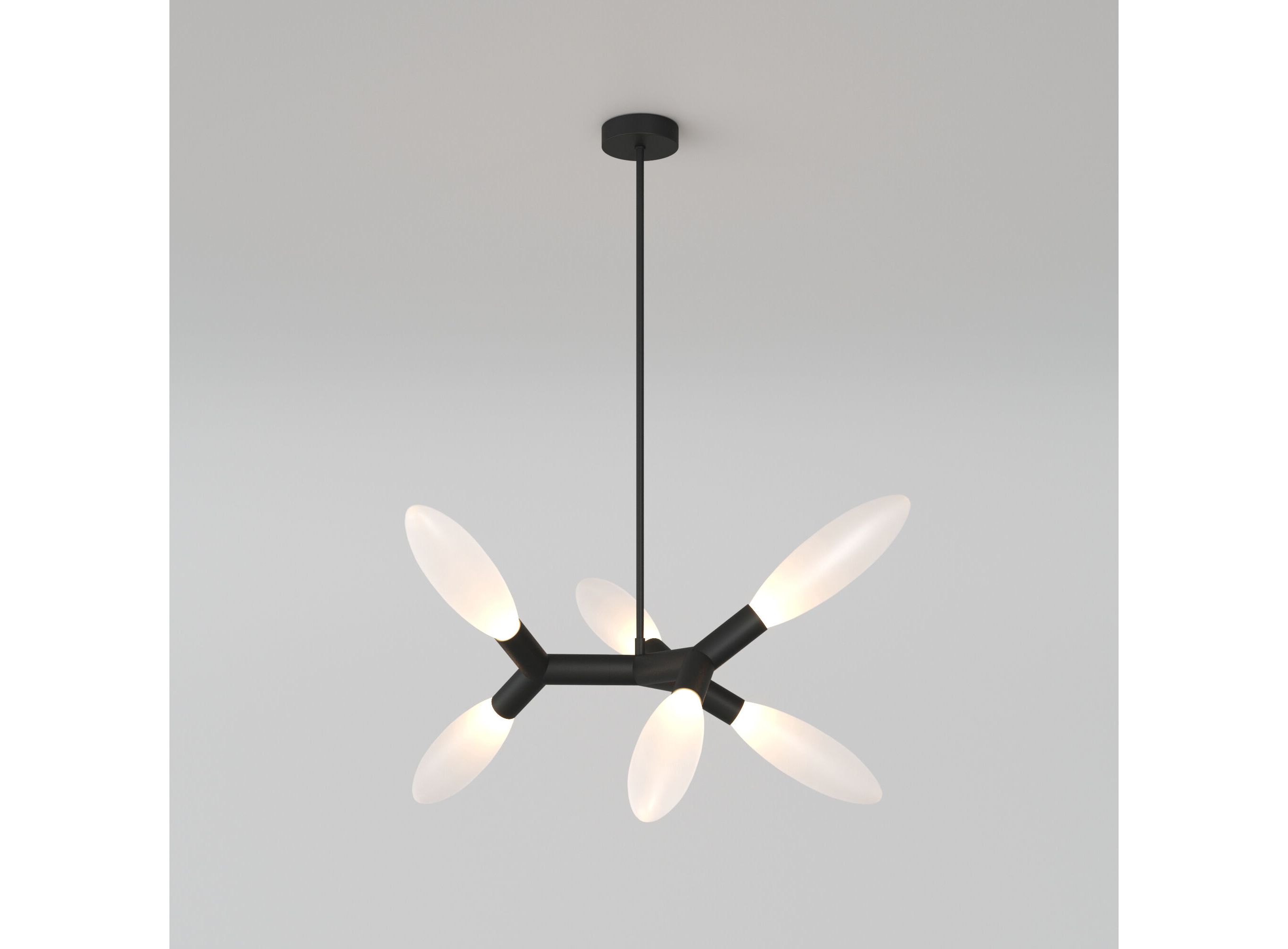 <p>Крупная трубчатая арматура по форме напоминает молекулу и добавляет моделям эстетику науки и современности. Ассиметричное расположение плафонов в виде закрытых бутонов обеспечивает мягкое рассеивание света в разные стороны.</p>