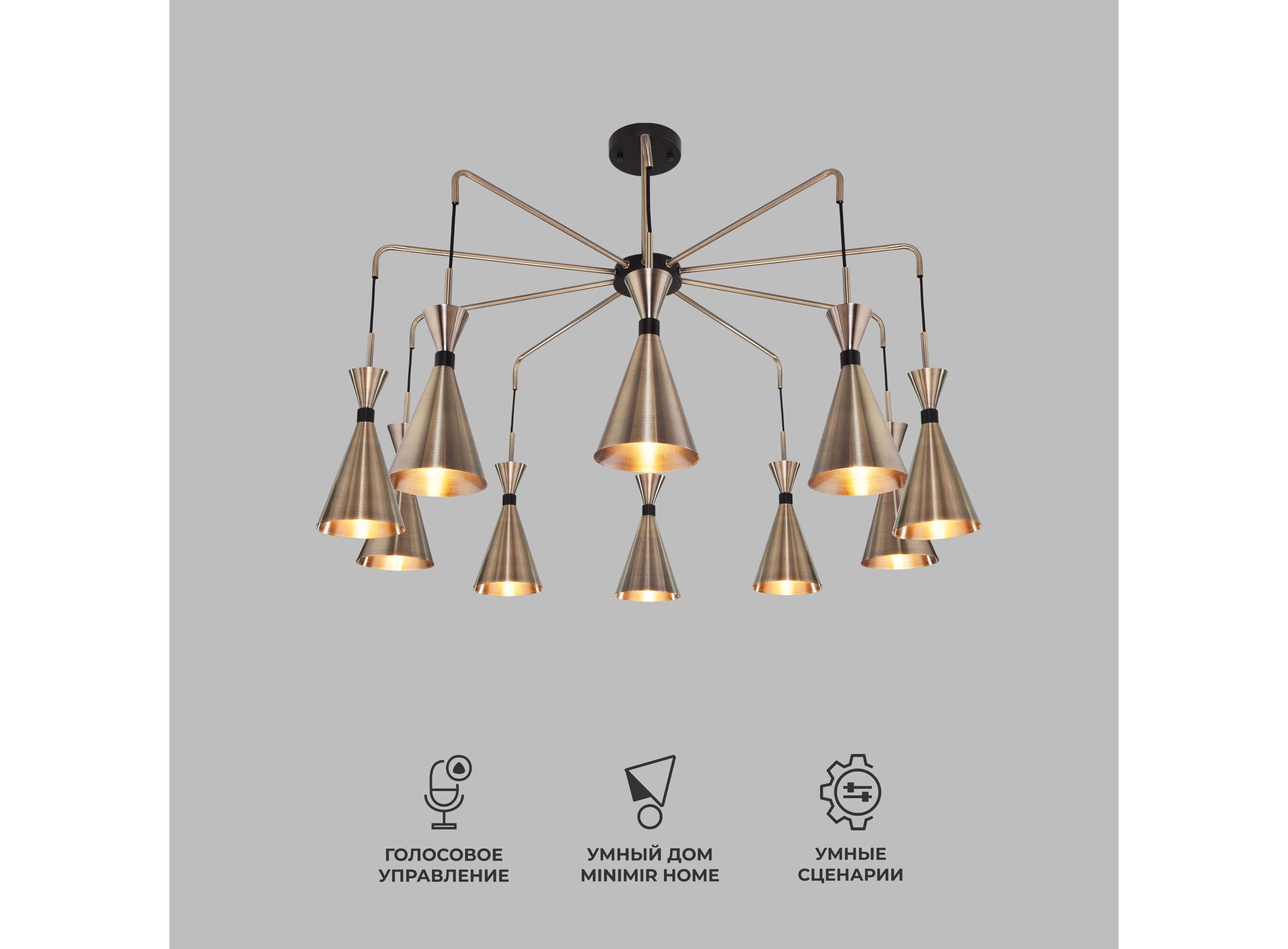 Умная люстра в стиле лофт 316/10 латунь / черный