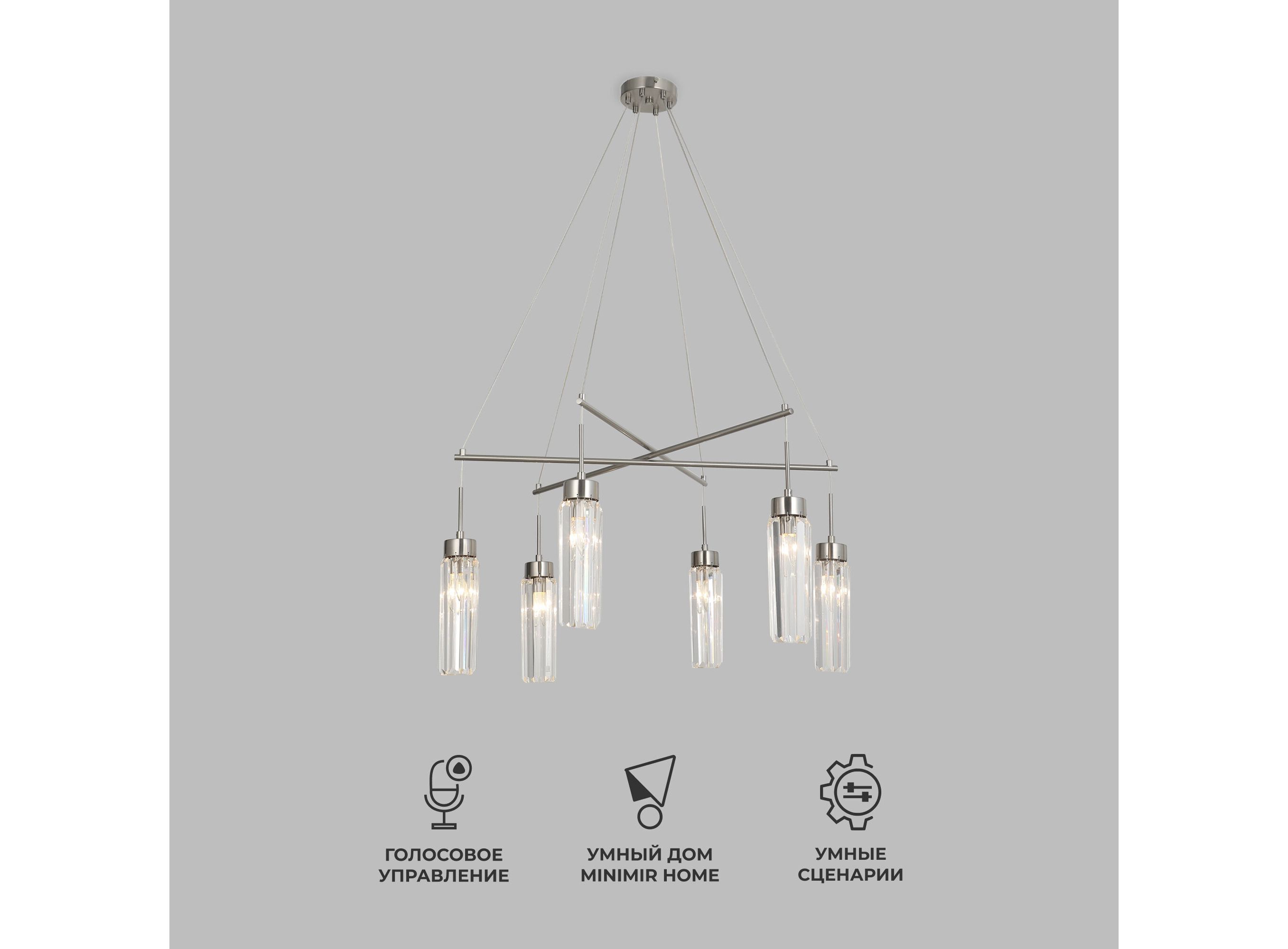 Умная подвесная люстра с хрусталем 60163/6 никель