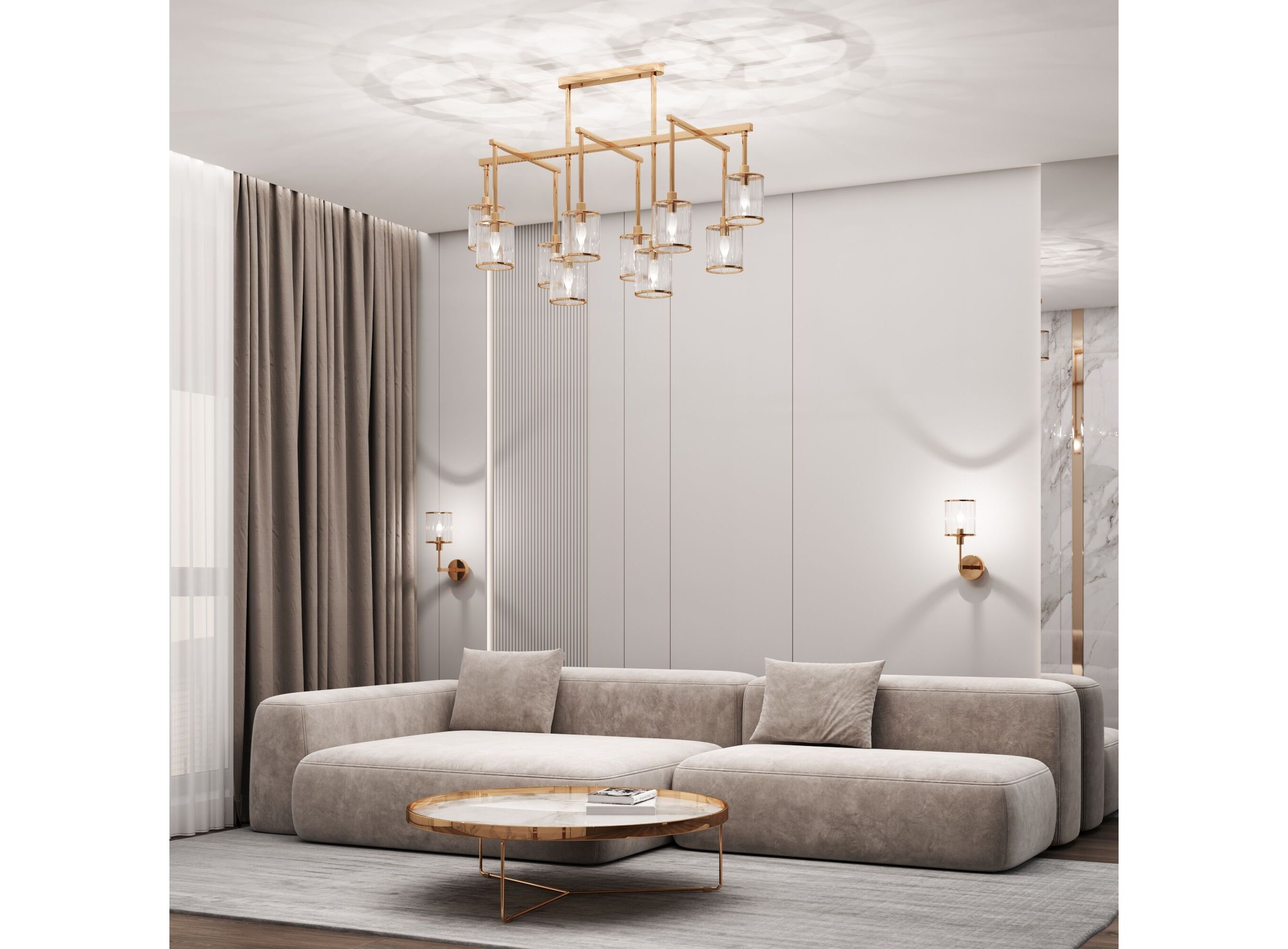 <p>Люстра Inari в благородном цвете золота создана, чтобы стать центром визуального притяжения в современном интерьере зала, спальни или кухни. Изящный, но в то же время монументальный дизайн, который хочется рассматривать, обращая внимание на детали. Десять фактурных стеклянных плафонов мягко рассеивают свет, наполняя им максимум пространства за счет открытой конструкции. В потолочном светильнике используются сменные лампы с цоколем E14.</p>