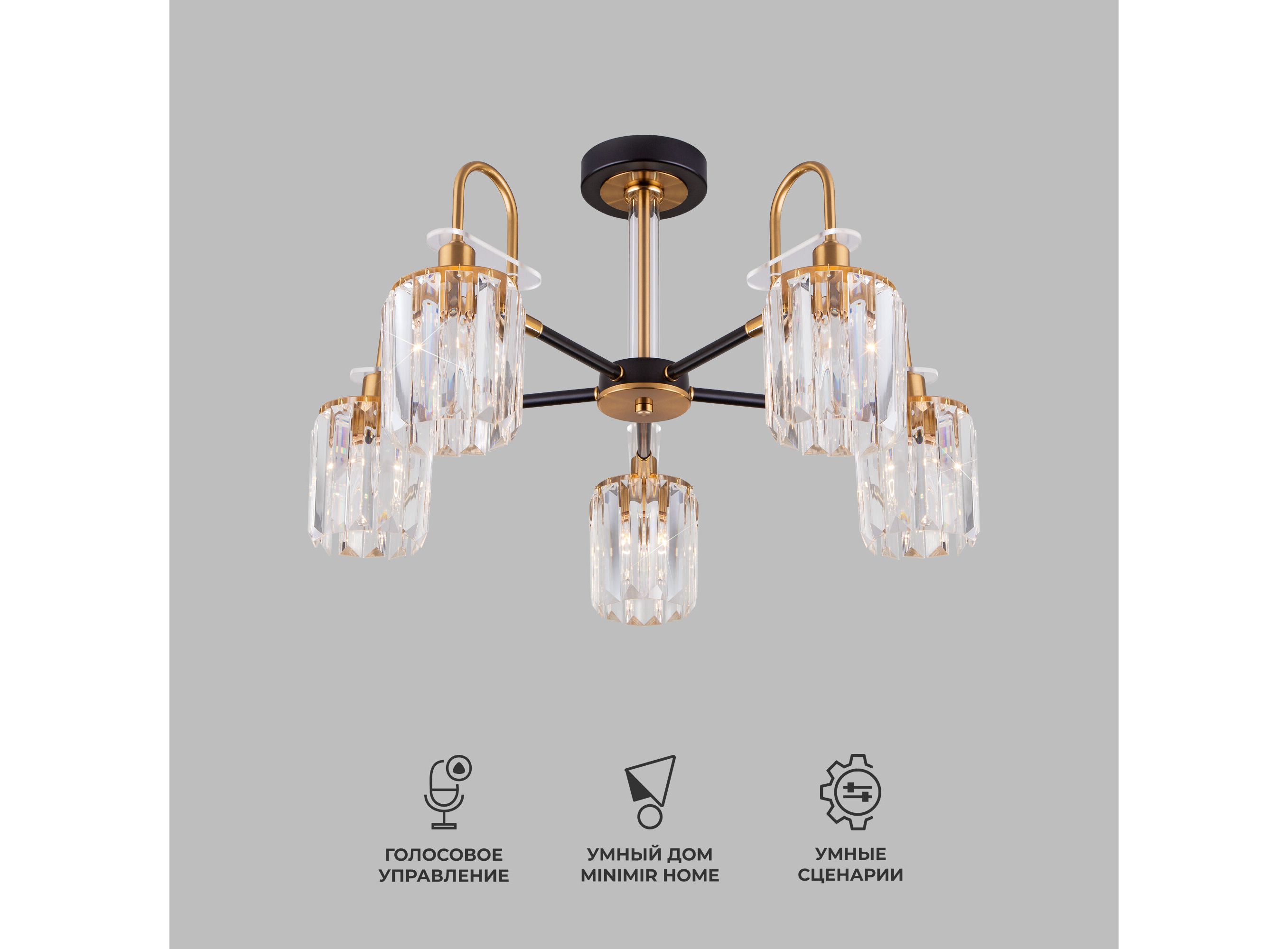 Умная потолочная люстра с хрусталем в стиле лофт 70090/5 черный