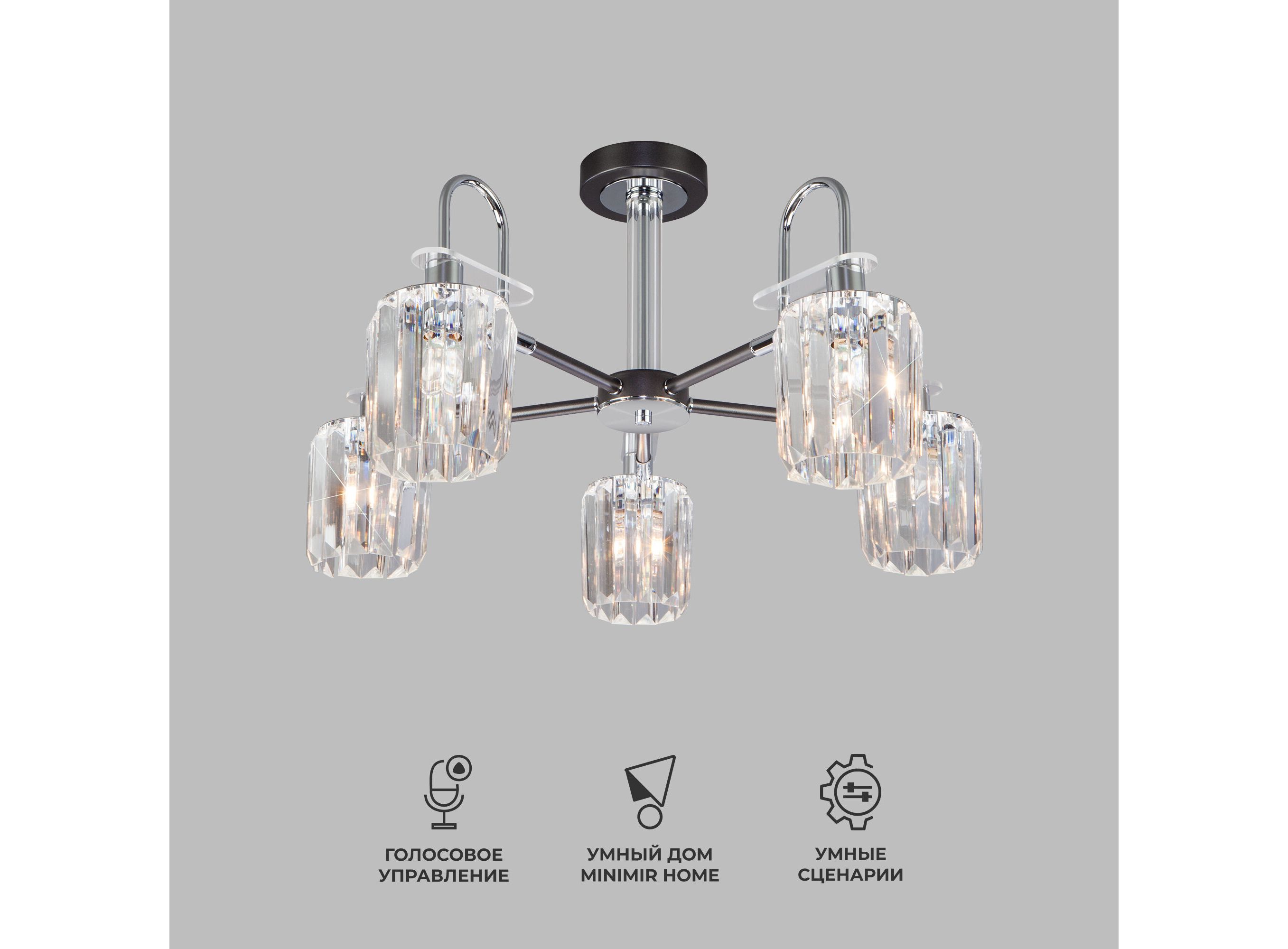 Умная потолочная люстра с хрусталем в стиле лофт 70090/5 графит
