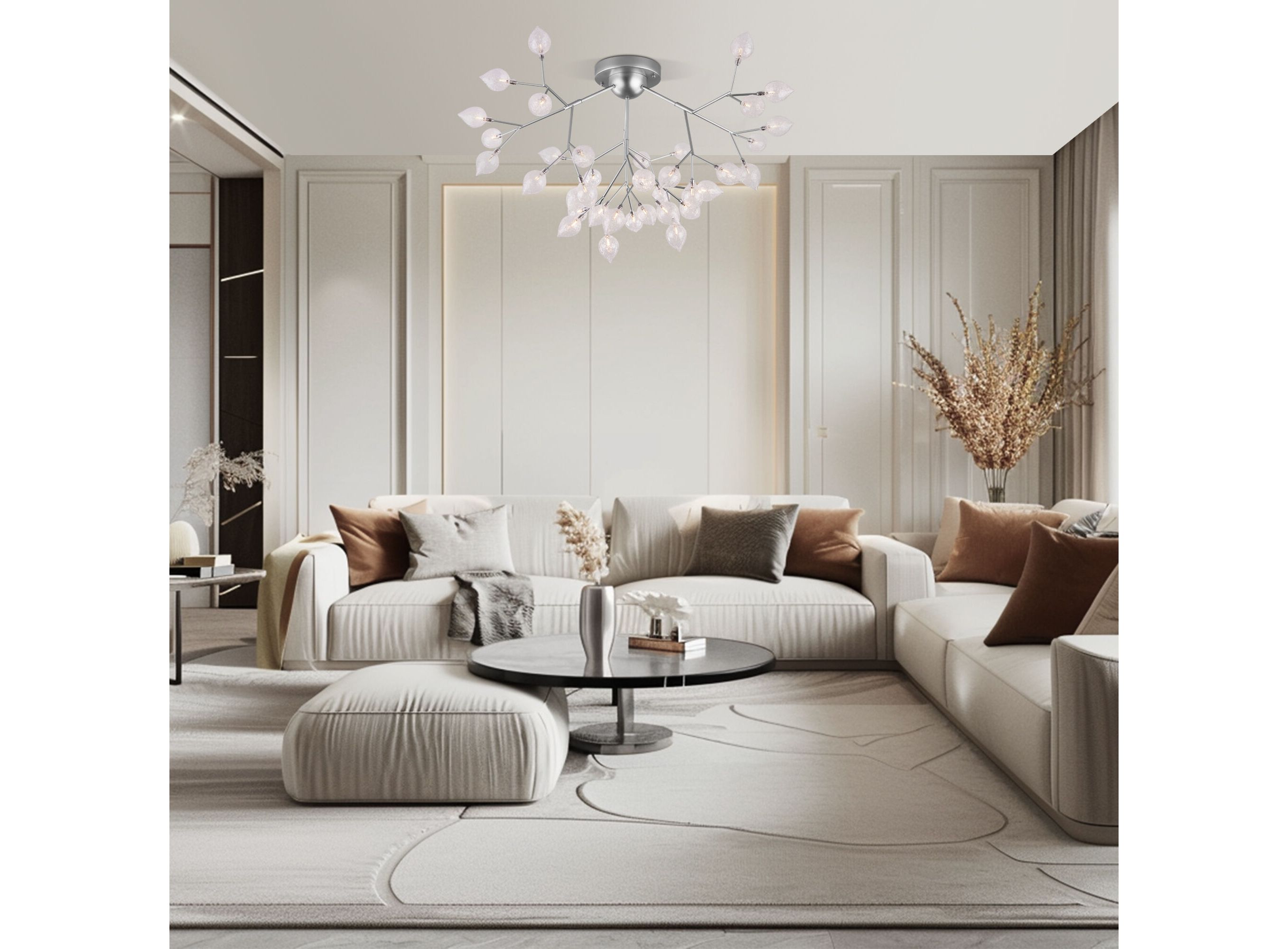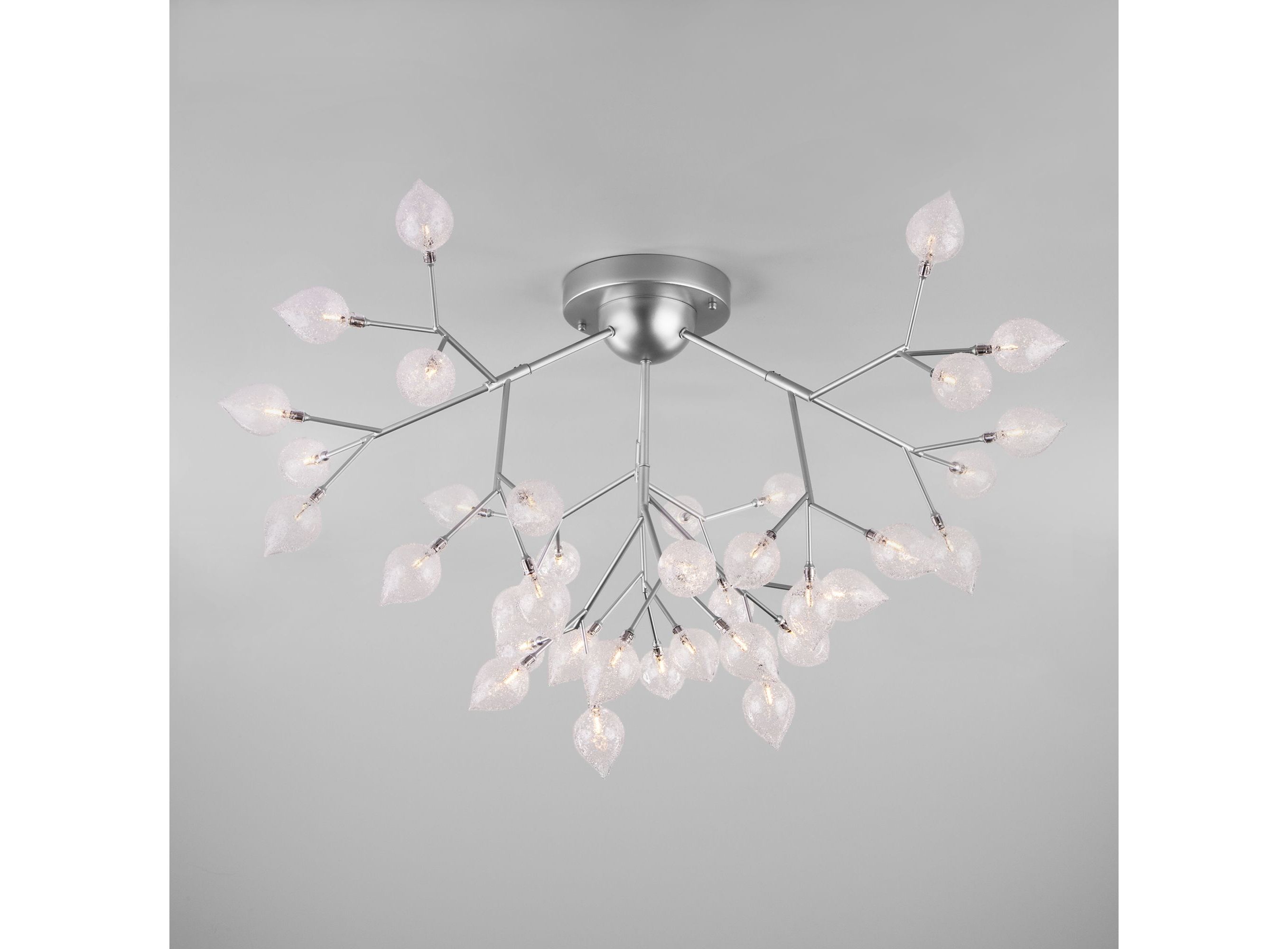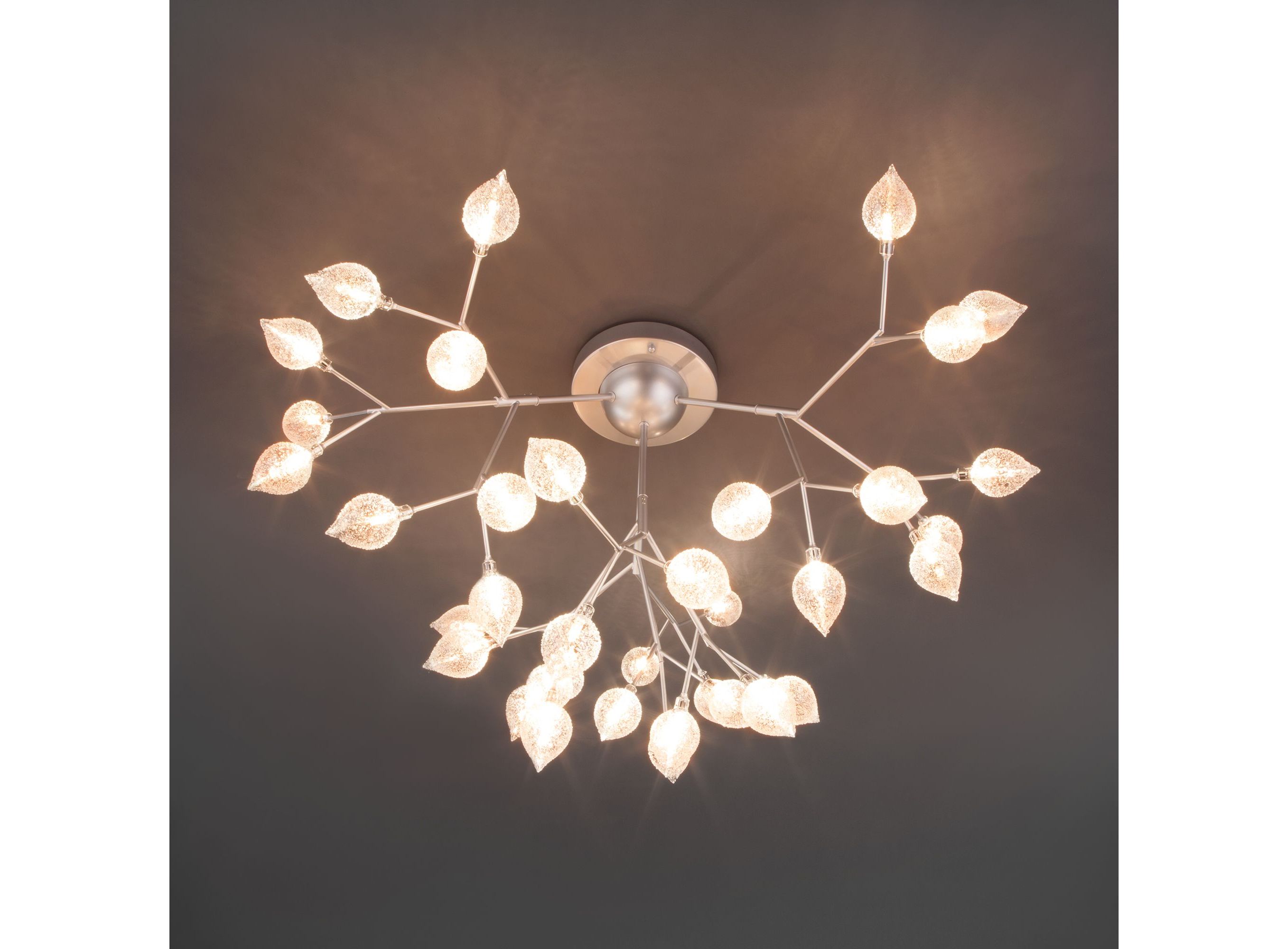 <p>Дизайнерская люстра имеет 36 рожков и оснащена патронами с цоколем G4, которые рассчитаны на максимальную мощность ламп 3 Вт. Люстра украшена эффектными стеклянными плафонами в форме лепестков. Арматура изготовлена из высококачественного металла с надежным защитным покрытием.</p>