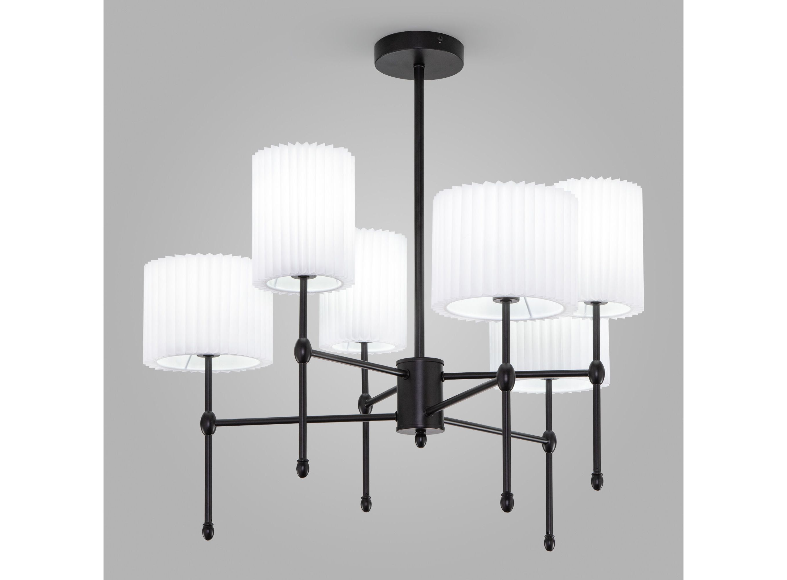 <p>Организовать качественное освещение вам поможет классическая потолочная люстра с тканевыми абажурами. Простые минималистичные формы и сдержанные тона станут идеальным дополнением для вашего интерьера.</p> <p>Люстра украсит потолок вашей 11 м&sup2;. В люстре рекомендуется использовать сменные лампы накаливания с цоколем Е14 с максимальной мощностью 40 Вт. В производстве люстры использовали высококачественный металл с надежным защитным покрытием.</p>