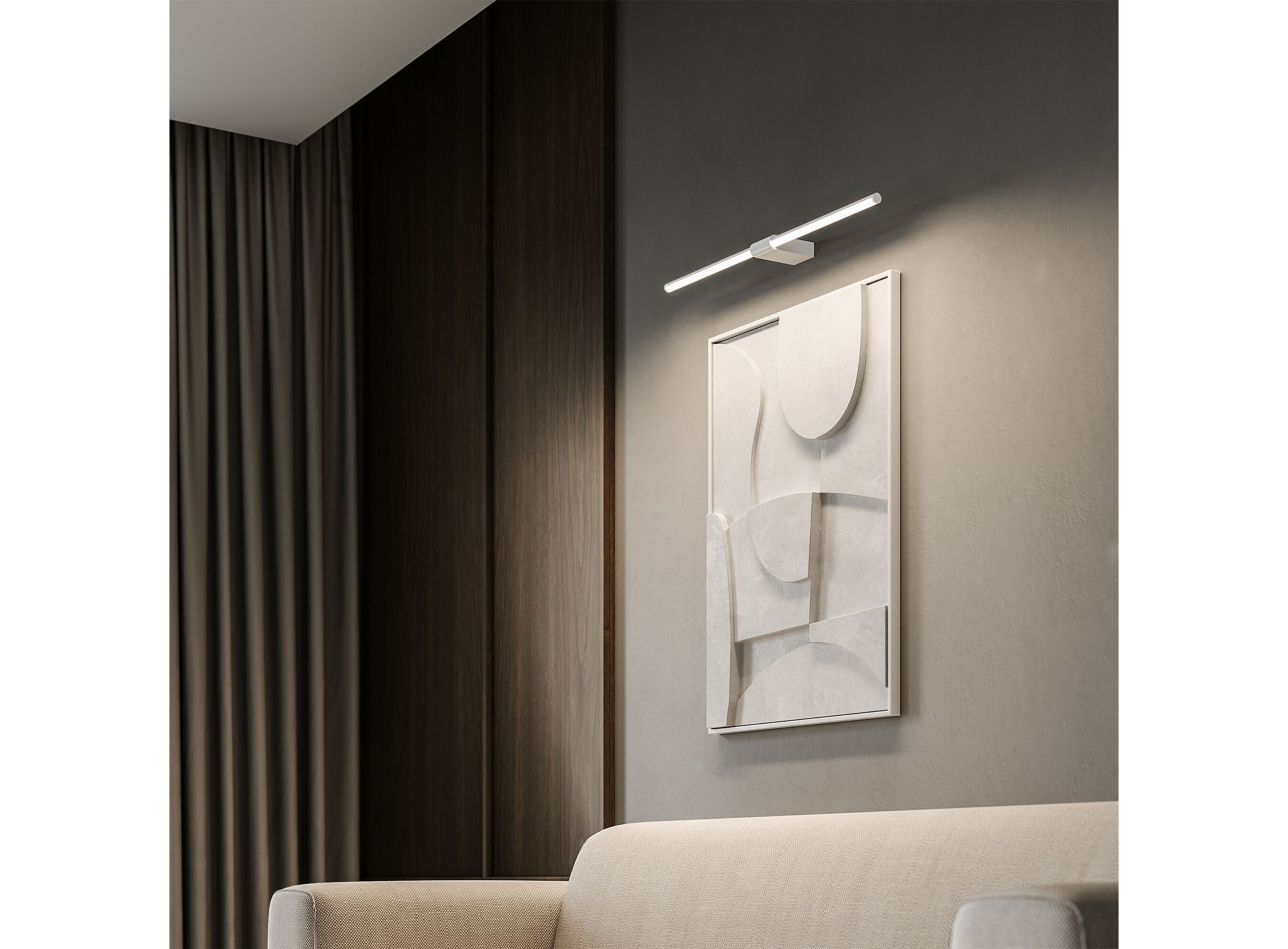 <p class="MsoNormal">Настенный светодиодный светильник Luar – это утонченная модель в матовом белом цвете, которая гармонично дополнит современный интерьер спальни, гостиной, прихожей, коридора или кабинета. Благодаря естественно белому цвету 4000 К и индексу цветопередачи Ra 85%, светильник не искажает восприятие цвета. Поэтому коллекция Luar станет отличным решением для функциональной подсветки картин и зеркал.</p>