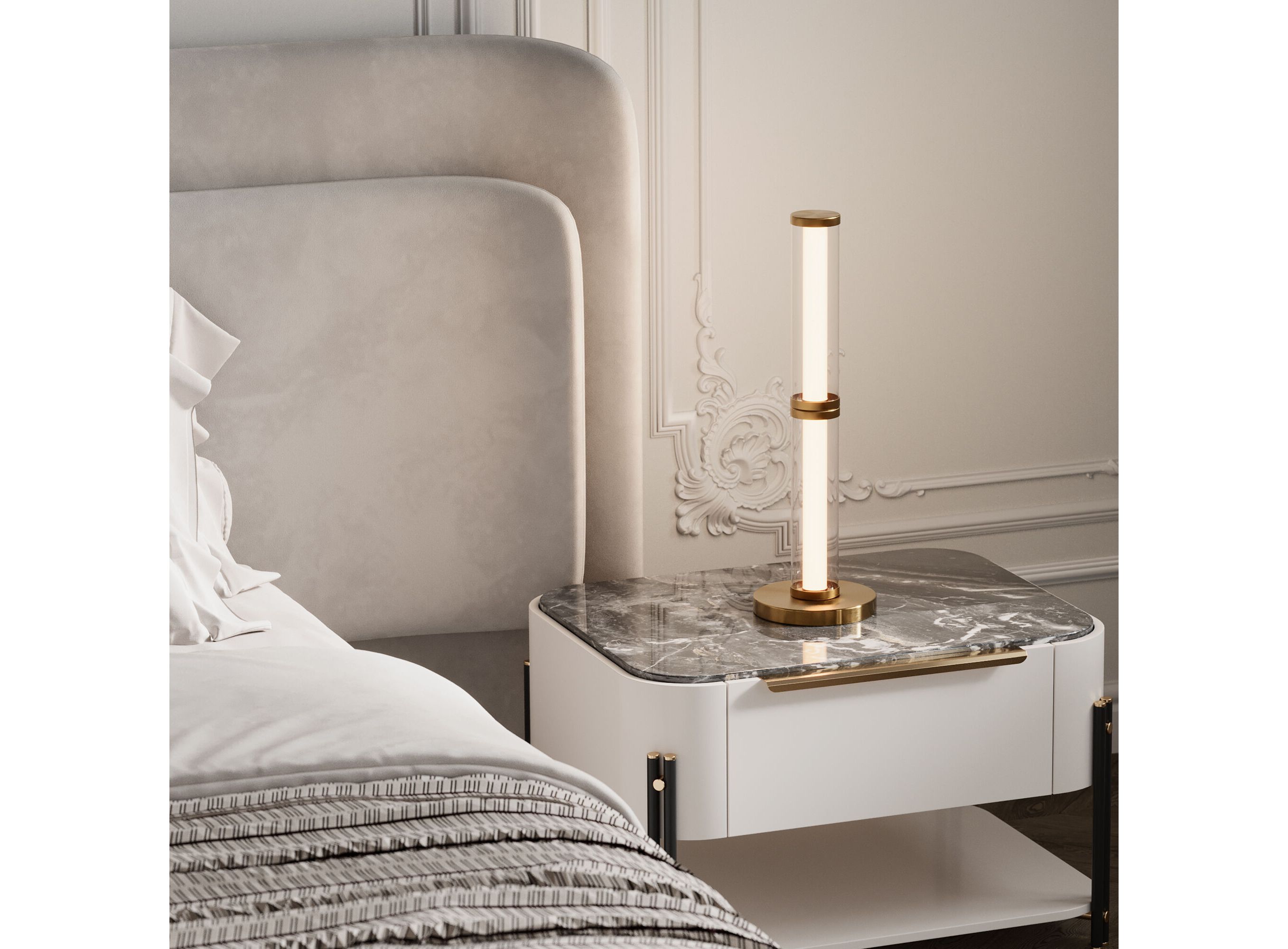 <p>Белые трубчатые плафоны, дополненные прозрачным стеклом, создают эффект визуального парения, мягко рассеивая свет. Элементы по форме напоминают яркие векторные стрелы, которые указывают путь к инновационным идеалам, соединяя функциональность с эстетической выразительностью.</p>