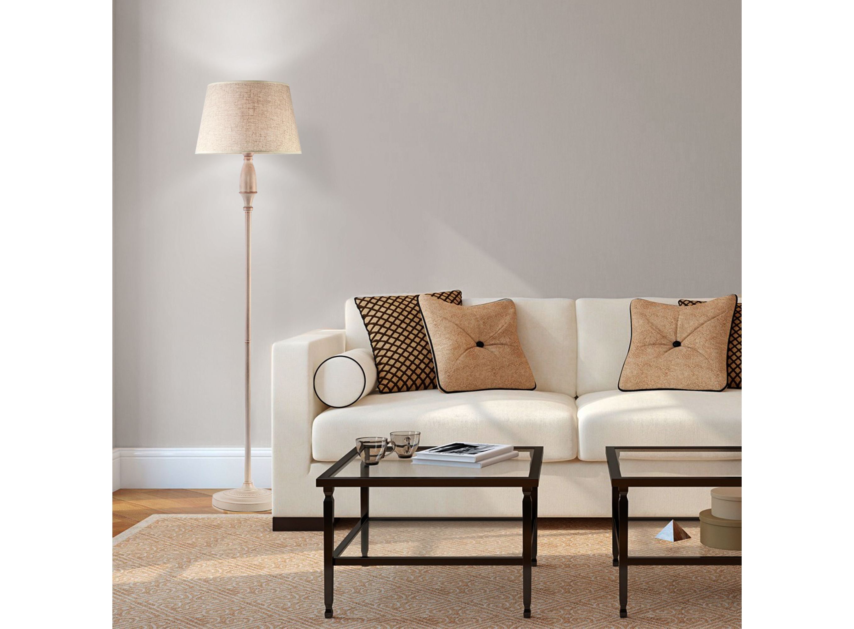 <p>Благодаря белому с золотом тканевому абажуру напольный светильник создает мягкое равномерное свечение, подходящее для комфортного чтения книг в вечернее время. Прочный металлический корпус светильника устойчив к механическим воздействиям, а защитное покрытие обеспечивает надежную электроизоляцию и презентабельный внешний вид.</p>