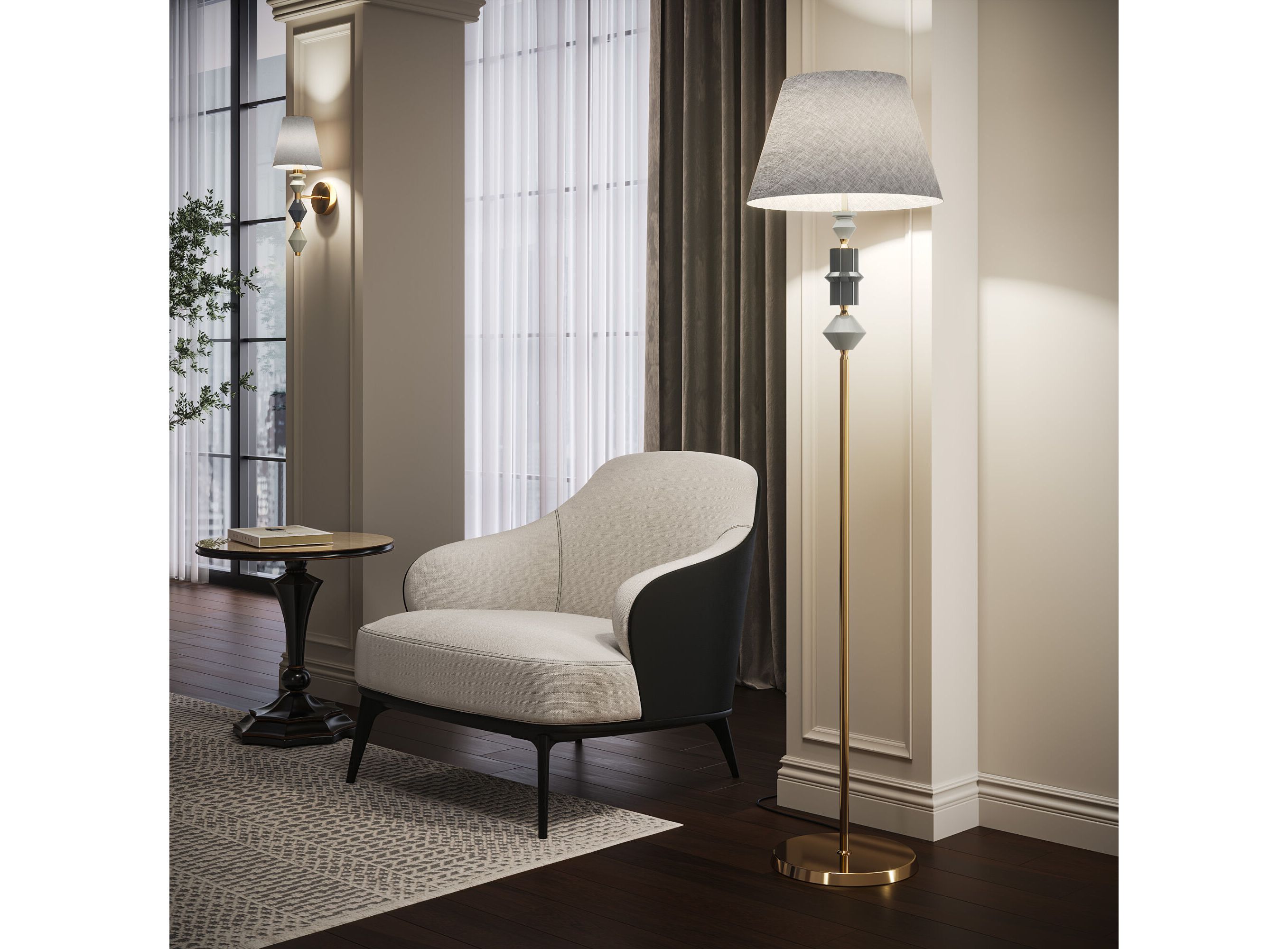 <p>Арматура в цвете латунь придает торшеру легкость и воздушность, а нейтральный абажур создает мягкий, рассеянный свет.<br>Декоративные элементы из керамики добавляют торшеру уникальности и шарма.<br>Благодаря своему нейтральному дизайну, торшер легко впишется в интерьеры различных стилей – от классики до минимализма.</p>