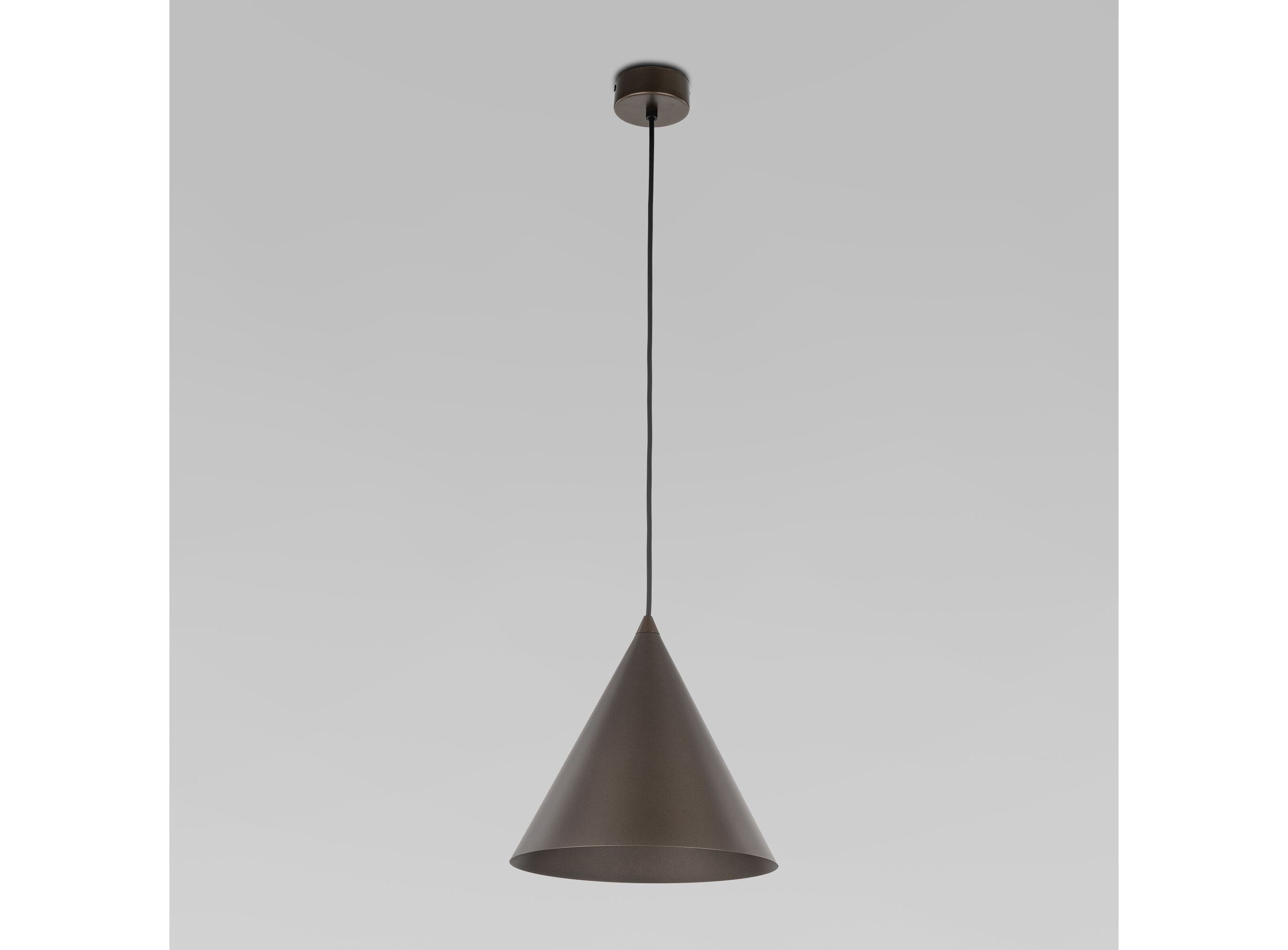 <p>Подвесной светильник 10037 Cono в коричневом цвете предназначен для создания дополнительного освещения и акцентной подсветки в современных интерьерах. Светильник со сменными лампами E27 создаст качественное освещение на площади 2 м кв. и подсветит рабочие зоны на кухне, в зале и в кабинете и в других местах. Подвесной светильник с металлическим плафоном оснащен системой регулировки высоты подвеса, позволяющей размещать изделие на разных уровнях, уменьшая или увеличивая угол рассеивания светового потока. Накладной светильник легко устанавливается на натяжных потолках при помощи монтажной планки.</p>