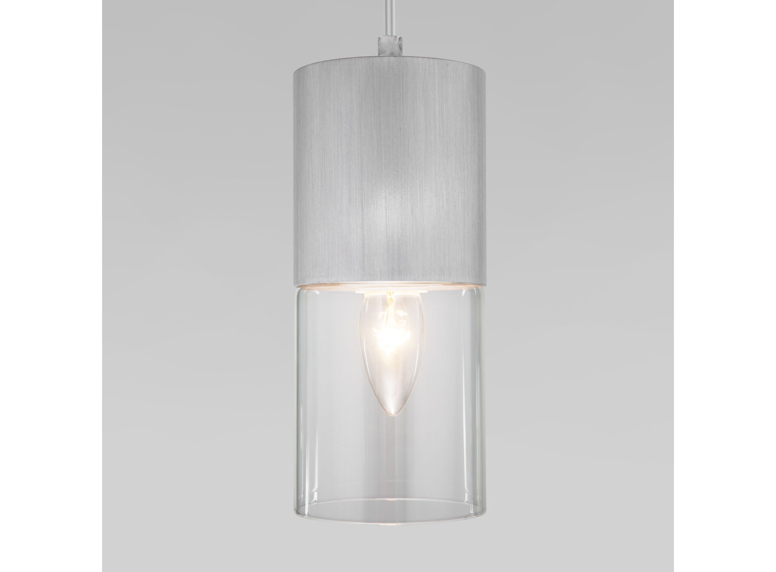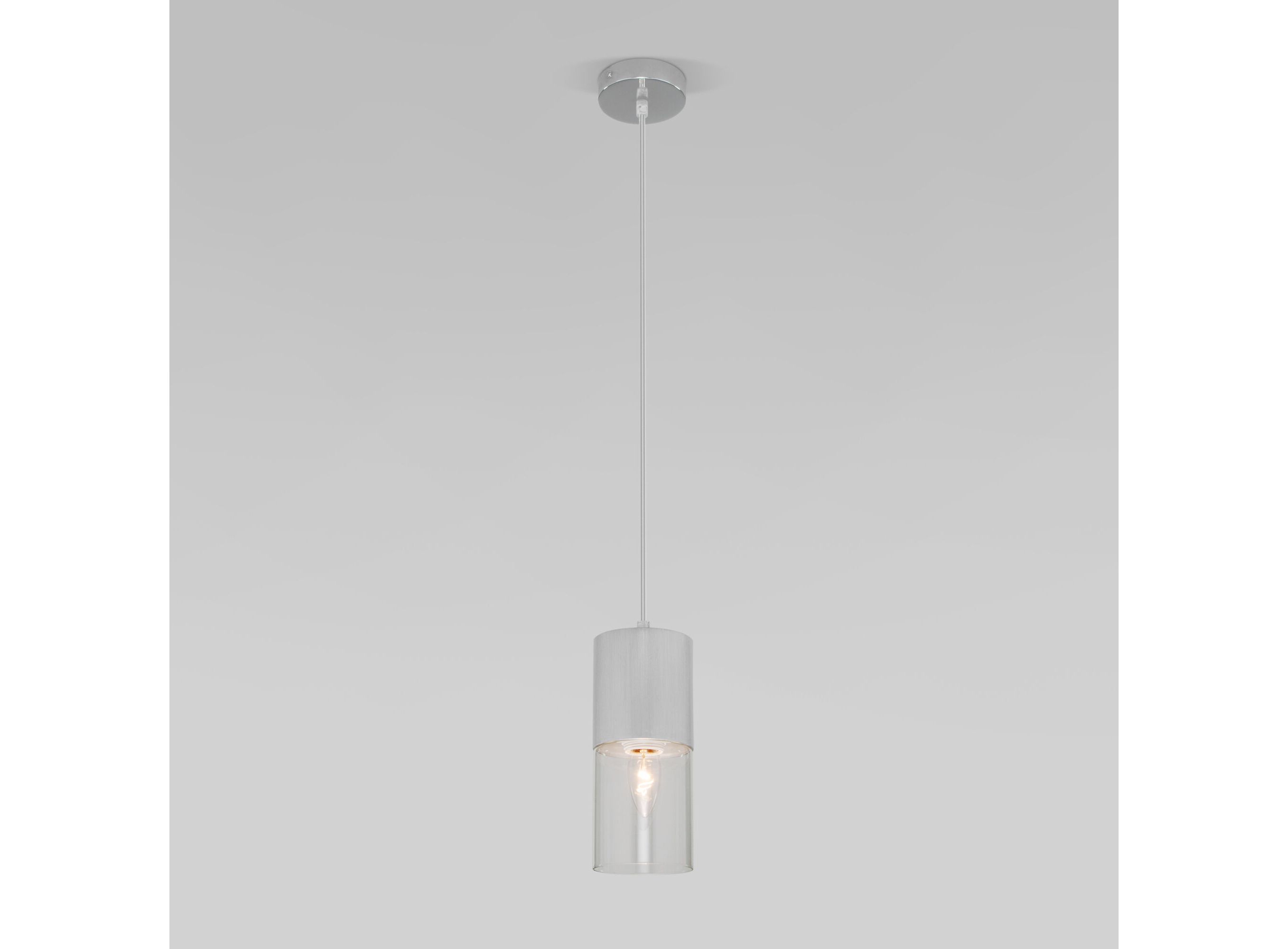 <p>Подвесной светильник Eurosvet 50233/1 с металлической арматурой в серебряном цвете с прозрачным плафоном предназначен для создания дополнительного освещения и акцентной подсветки в современных интерьерах. Светильник со сменной лампой E27 создаст качественное освещение на площади 2 кв.м. и подсветит рабочие зоны на кухне, в гостиной, в офисе и других местах.</p> <p>Светильник с плафоном, выполненным из металлического каркаса и стеклянного плафона, оснащен системой регулировки высоты подвеса, позволяющей размещать изделие на разных уровнях, уменьшая или увеличивая угол рассеивания светового потока. Данный светильник легко устанавливается на потолке при помощи монтажной планки.</p>