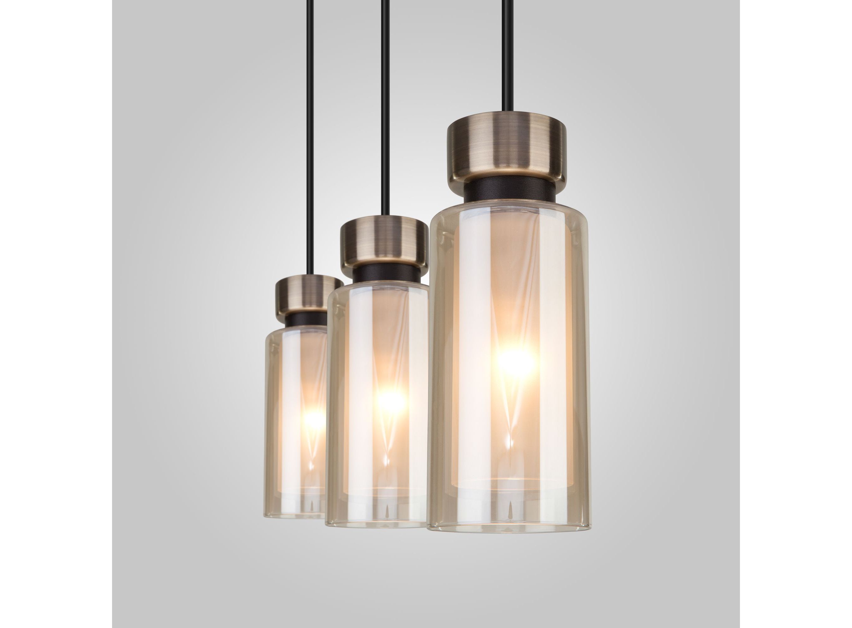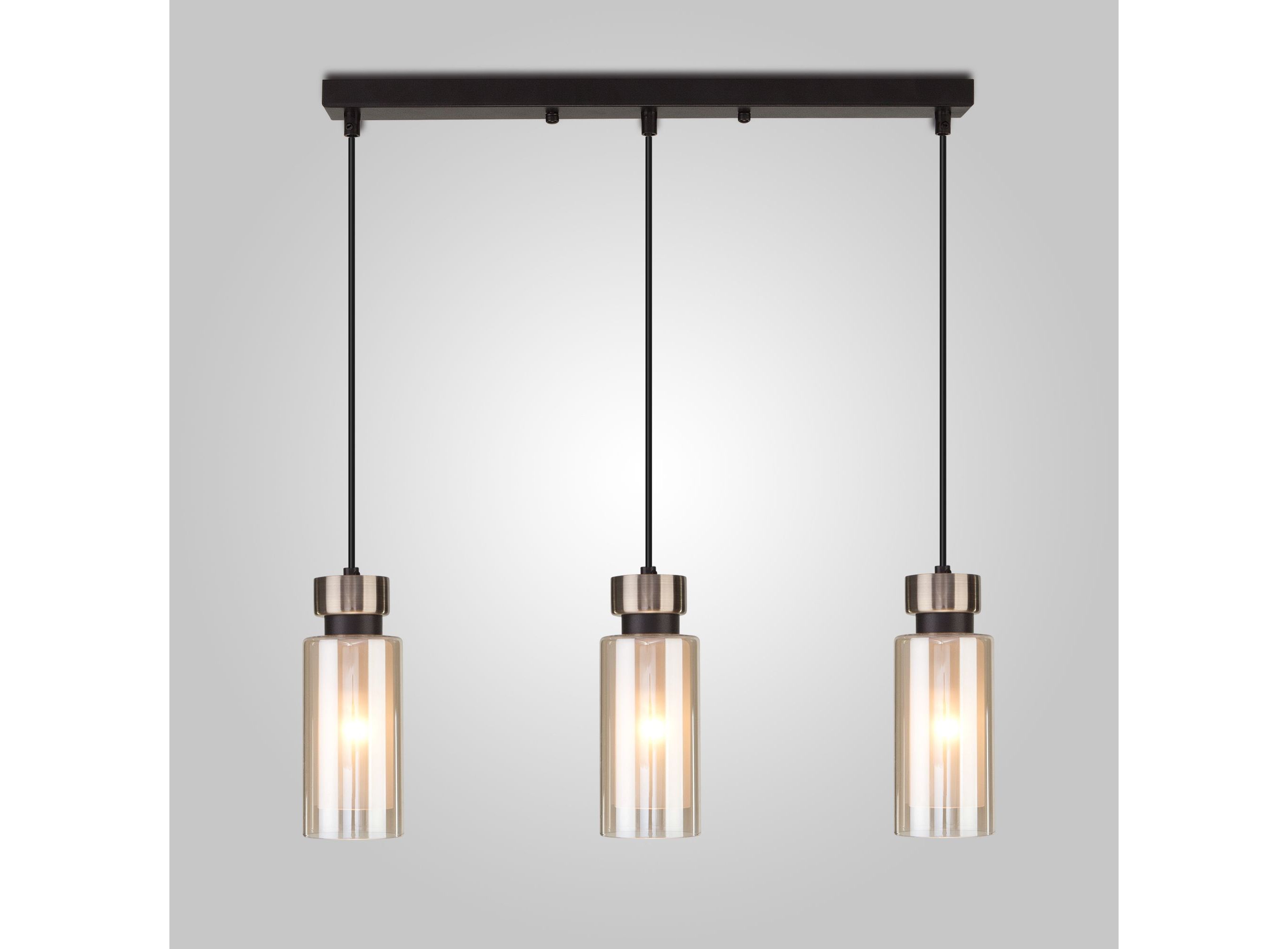 <p>Подвесной светильник со стеклянным плафоном 50115/3 в черном цвете с янтарными плафонами предназначен для создания дополнительного освещения и акцентной подсветки в современных интерьерах. Светильник со сменной лампой E14 создаст качественное освещение на площади 12 кв.м. и подсветит рабочие зоны на кухне, гостиной и других местах.</p>