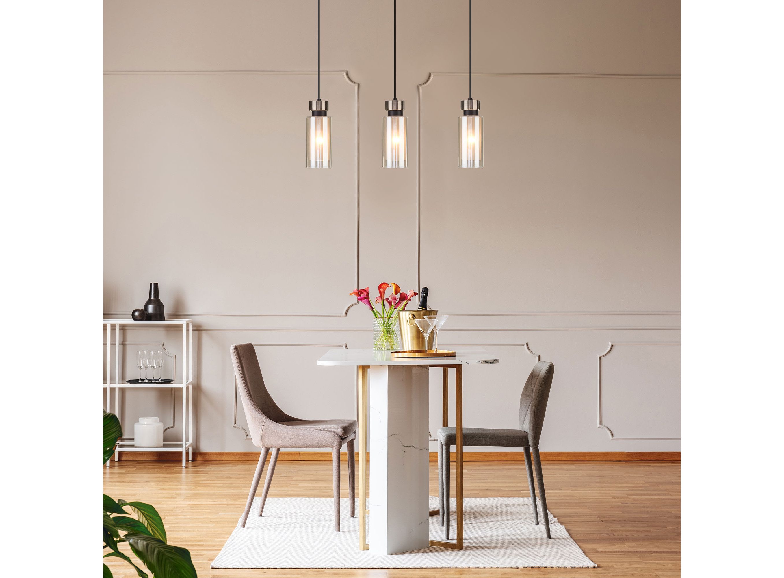 <p>Подвес с вытянутыми плафонами выполненные по форме стаканчика изготовленные из высокопрочного закалённого стекла и оснащен системой регулировки высоты подвеса, позволяющей размещать изделие на разных уровнях, уменьшая или увеличивая угол рассеивания светового потока. Данный светильник легко устанавливается на потолке при помощи монтажной планки.</p>