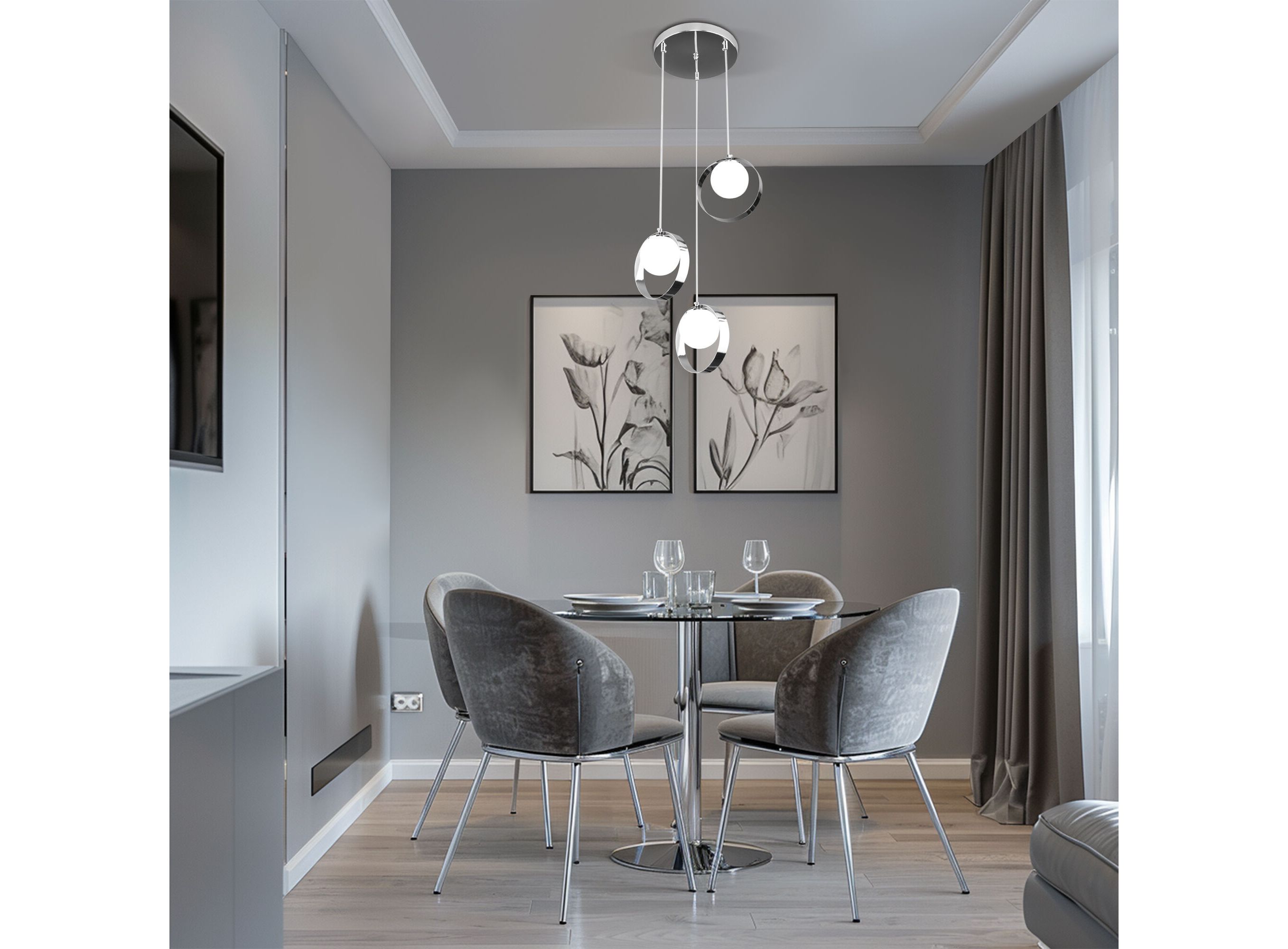 <p>Подвесной светильник со стеклянными плафонами 50205/3 в цвете хром предназначен для создания дополнительного освещения и акцентной подсветки в современных интерьерах. Светильник со сменными лампами G9 создаст качественное освещение на площади 4 кв.м. и подсветит рабочие зоны на кухне, в гостиной, в офисе и других местах.</p>