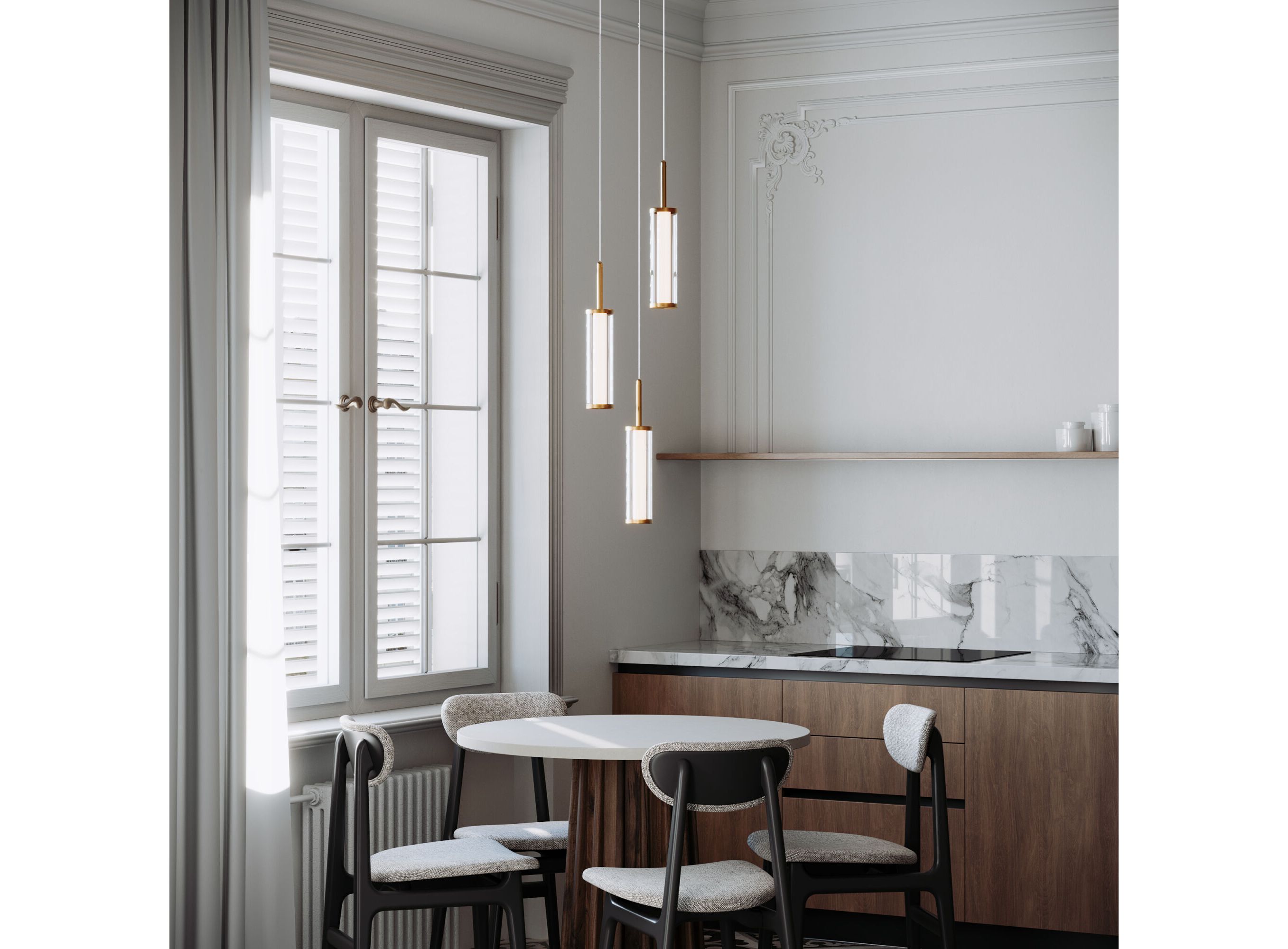 <p>Белые трубчатые плафоны, дополненные прозрачным стеклом, создают эффект визуального парения, мягко рассеивая свет. Элементы по форме напоминают яркие векторные стрелы, которые указывают путь к инновационным идеалам, соединяя функциональность с эстетической выразительностью.</p>