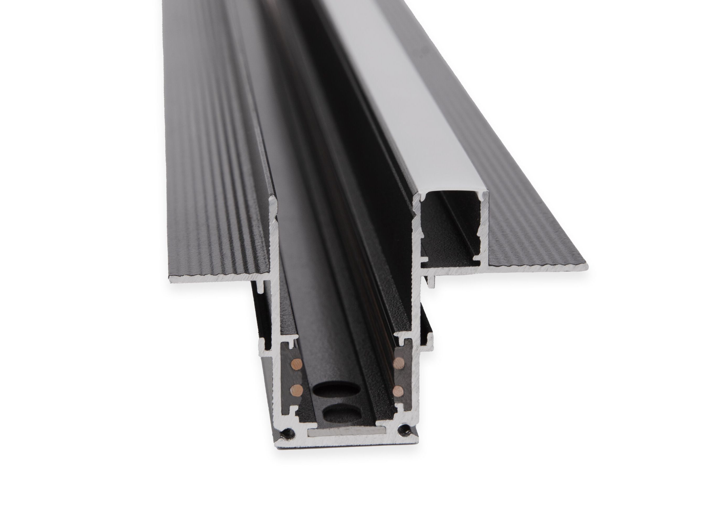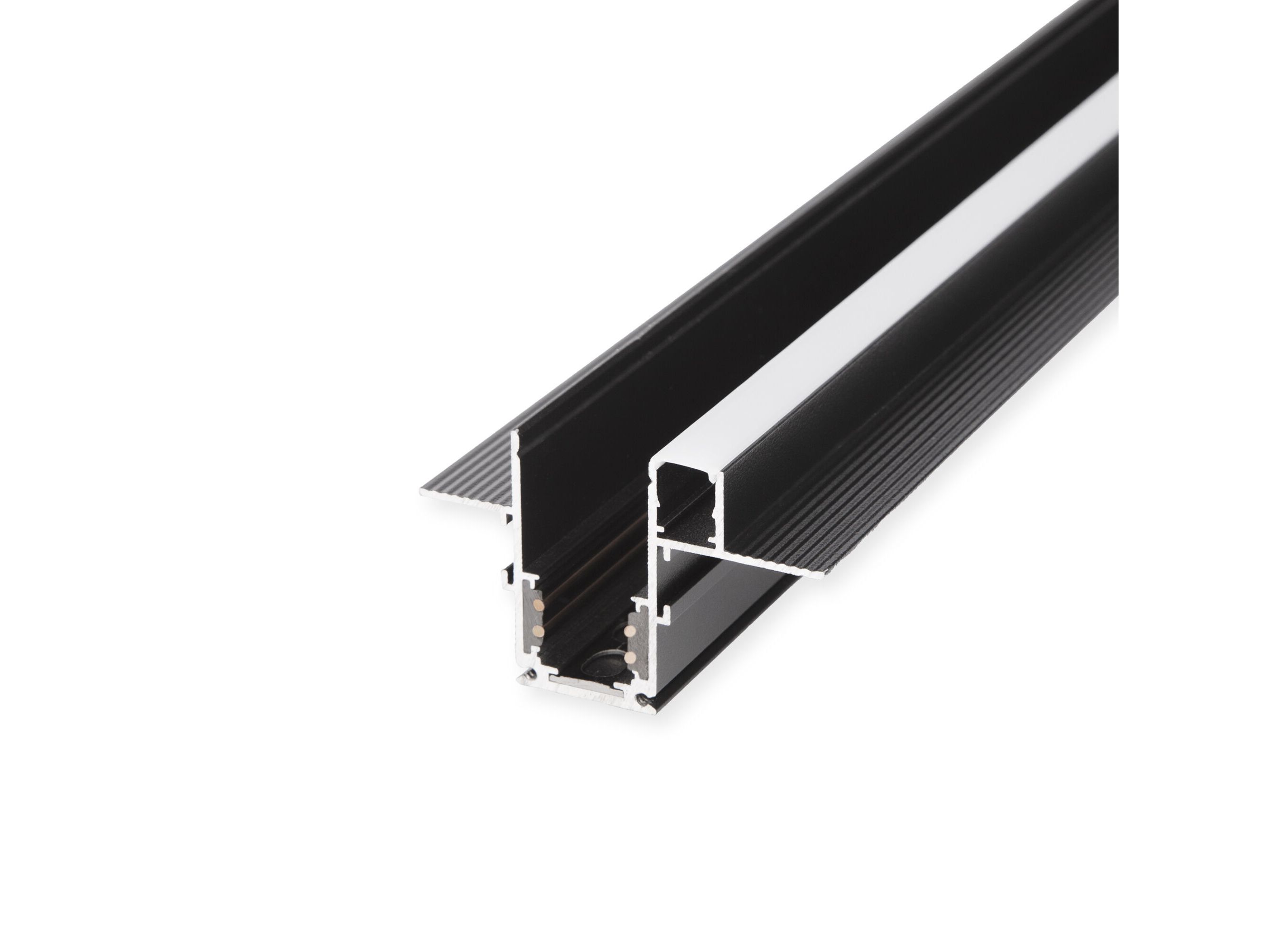 <p>Шинопровод встраиваемый черный с местом под светодиодную ленту (2м) Slim Magnetic. Slim Magnetic — низковольтная трековая магнитная система освещения. Благодаря низкому напряжению 48 В является безопасной в использовании и может быть установлена как на потолок, так и на стены. Светильники держатся на шинопроводе с помощью магнитных креплений, что позволяет свободно перемещать и добавлять новые источники света по всей длине трека без дополнительного монтажа. Для максимальной надежности светильники дополнительно оснащены фиксатором с кнопочным механизмом.</p>