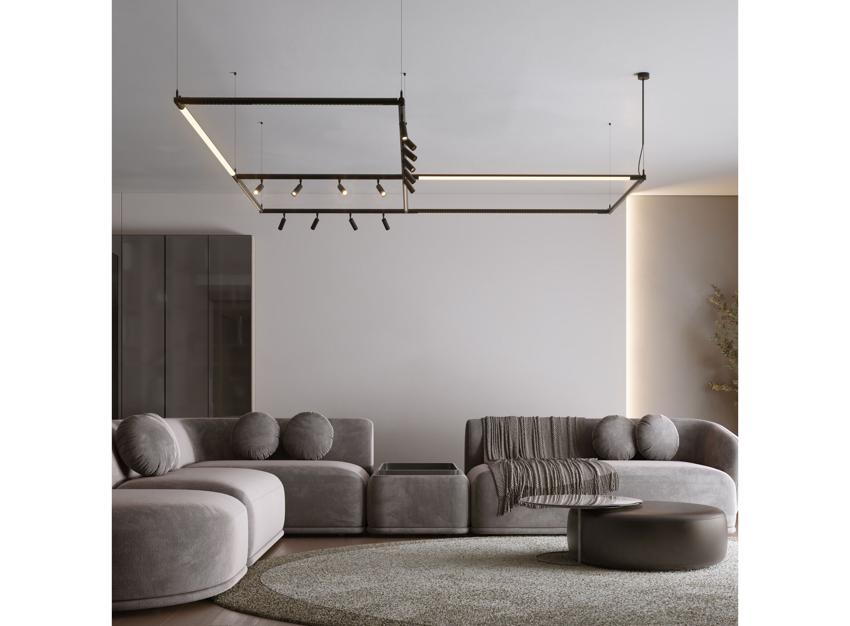<p>Module System подходит для готового ремонта благодаря накладному монтажу. Монтируется на декоративных гибких стойках и подвесах с возможностью регулирования высоты, к которым крепятся световые модули.</p>