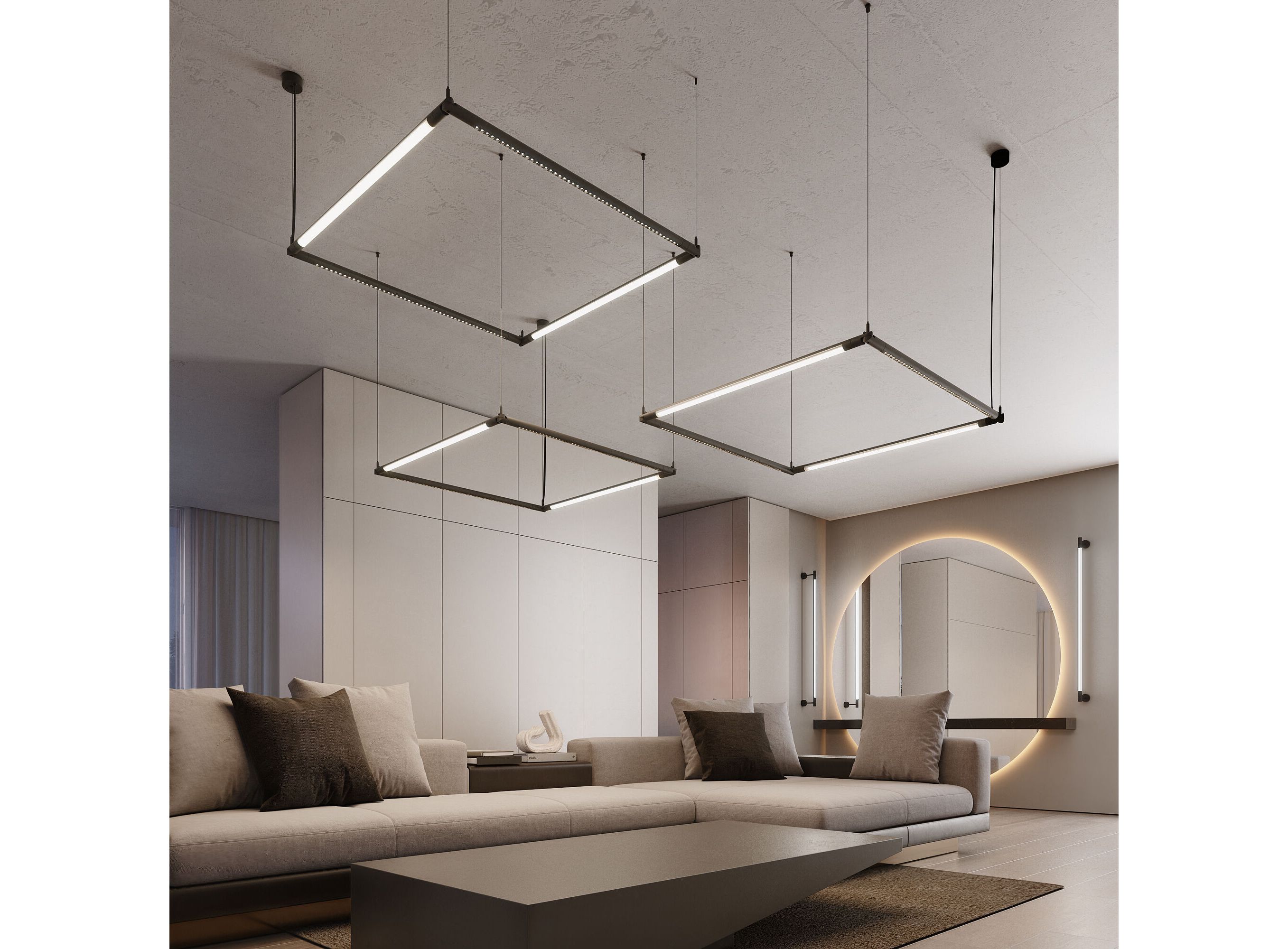 <p>Module System подходит для готового ремонта благодаря накладному монтажу. Монтируется на декоративных гибких стойках и подвесах с возможностью регулирования высоты, к которым крепятся световые модули.</p>