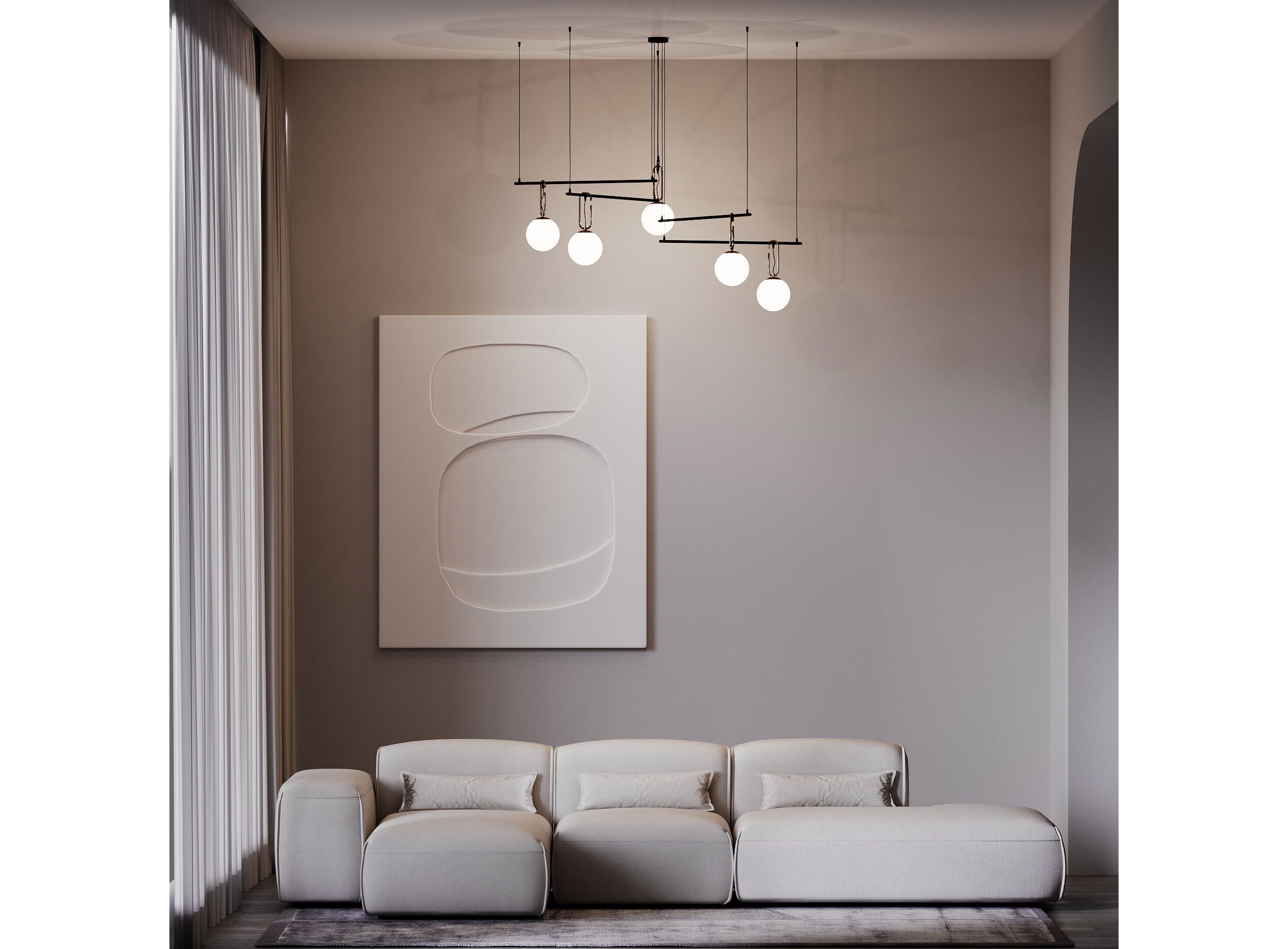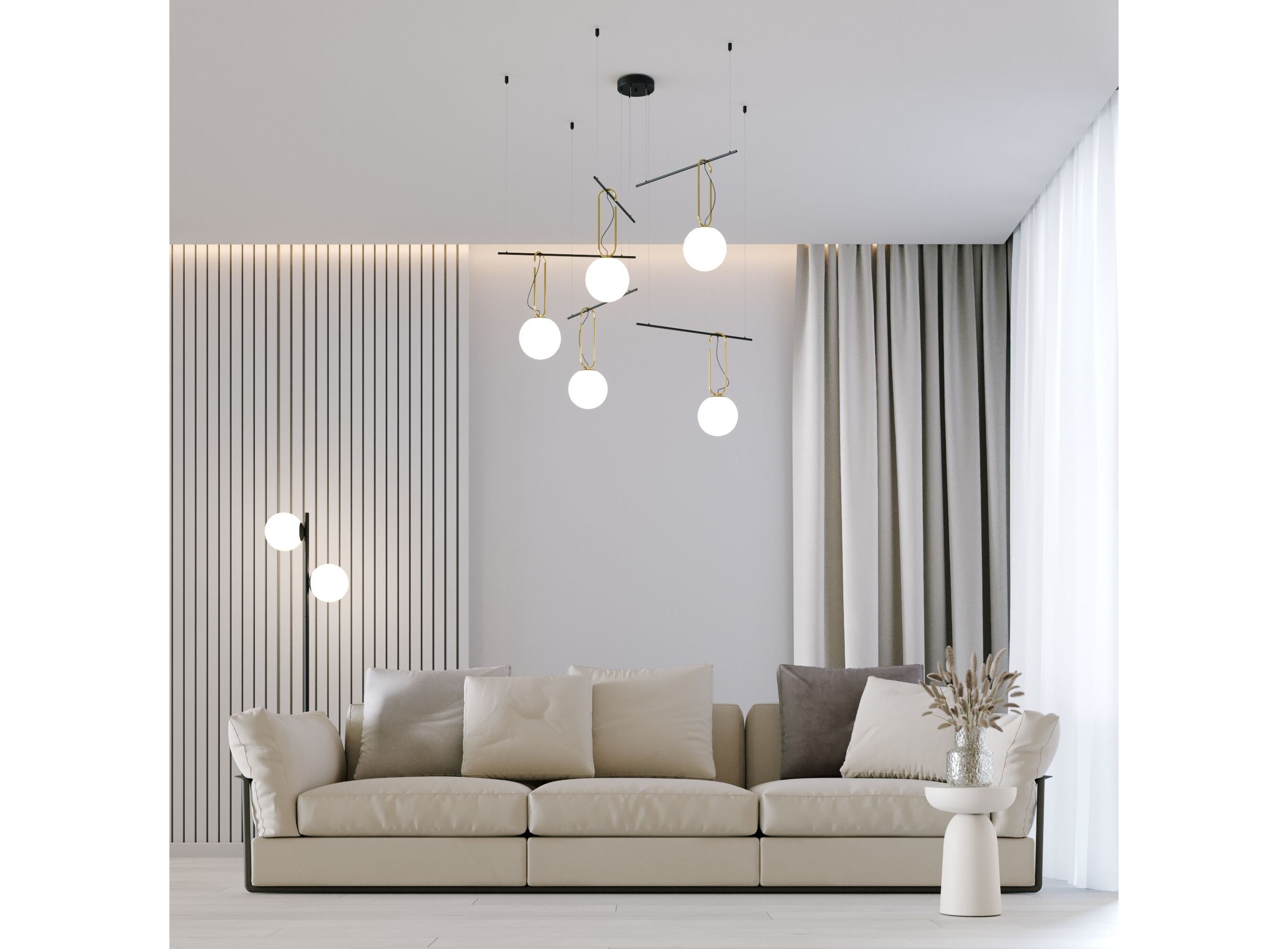 <p>Светильник со стеклянными плафонами оборудован системой регулировки высоты подвеса, позволяющей размещать изделие на разных уровнях, уменьшая или увеличивая угол рассеивания светового потока. Подвесной светильник просто устанавливается на натяжных потолках при помощи монтажной планки.</p>