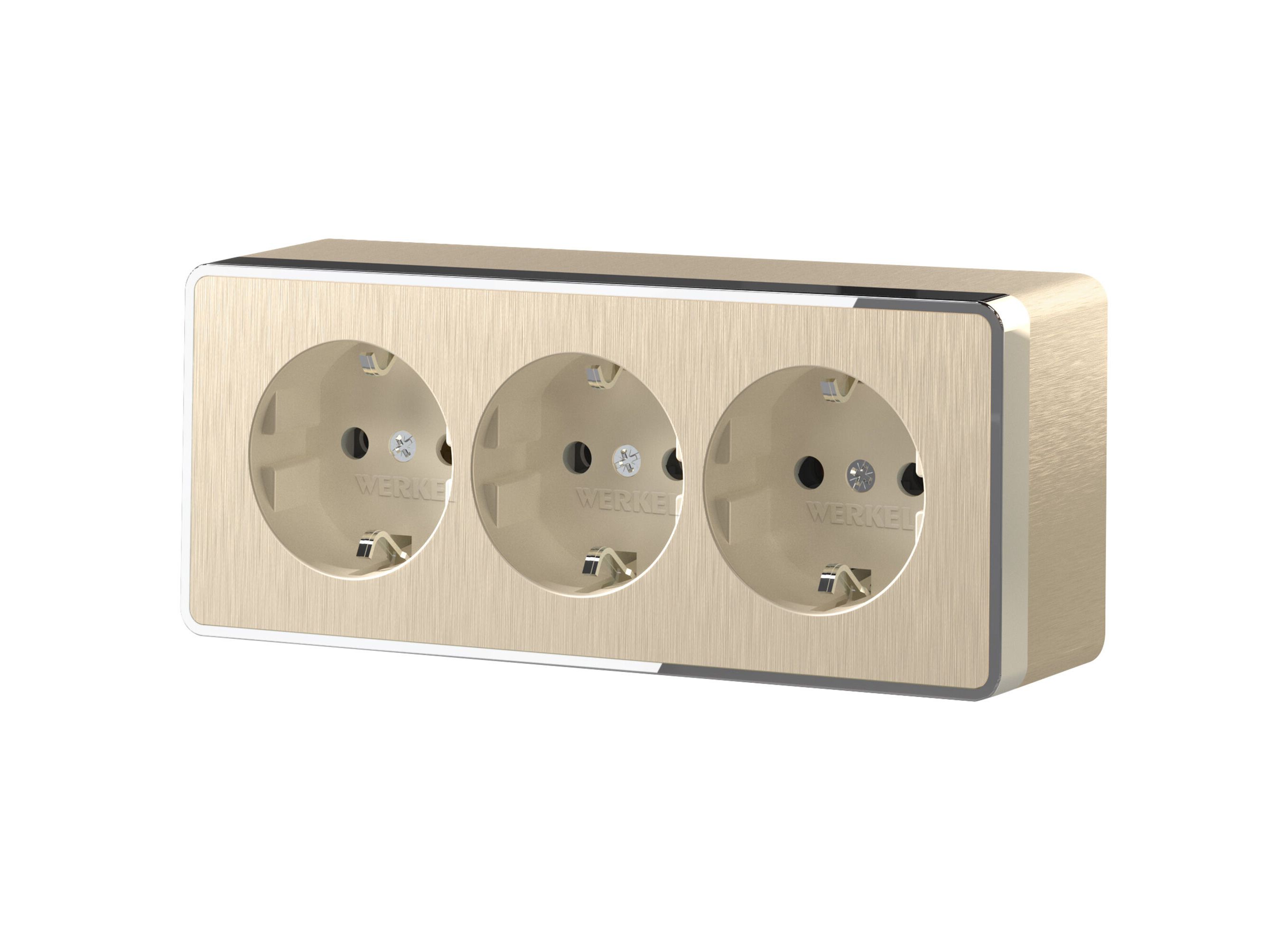 Розетка тройная с заземлением и шторками Gallant шампань рифленый W5073110