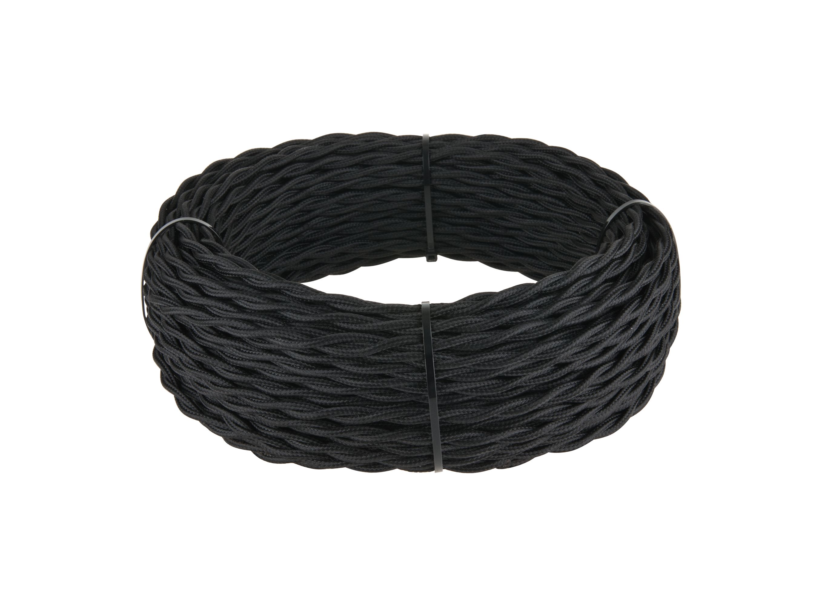 <p>Ретро кабель витой 2х1,5 черный 50 м. Многожильный медный провод обеспечивает гибкость кабеля и его высокие электротехнические характеристики. Наружная оплетка кабеля имитирует натуральный шелк.</p>