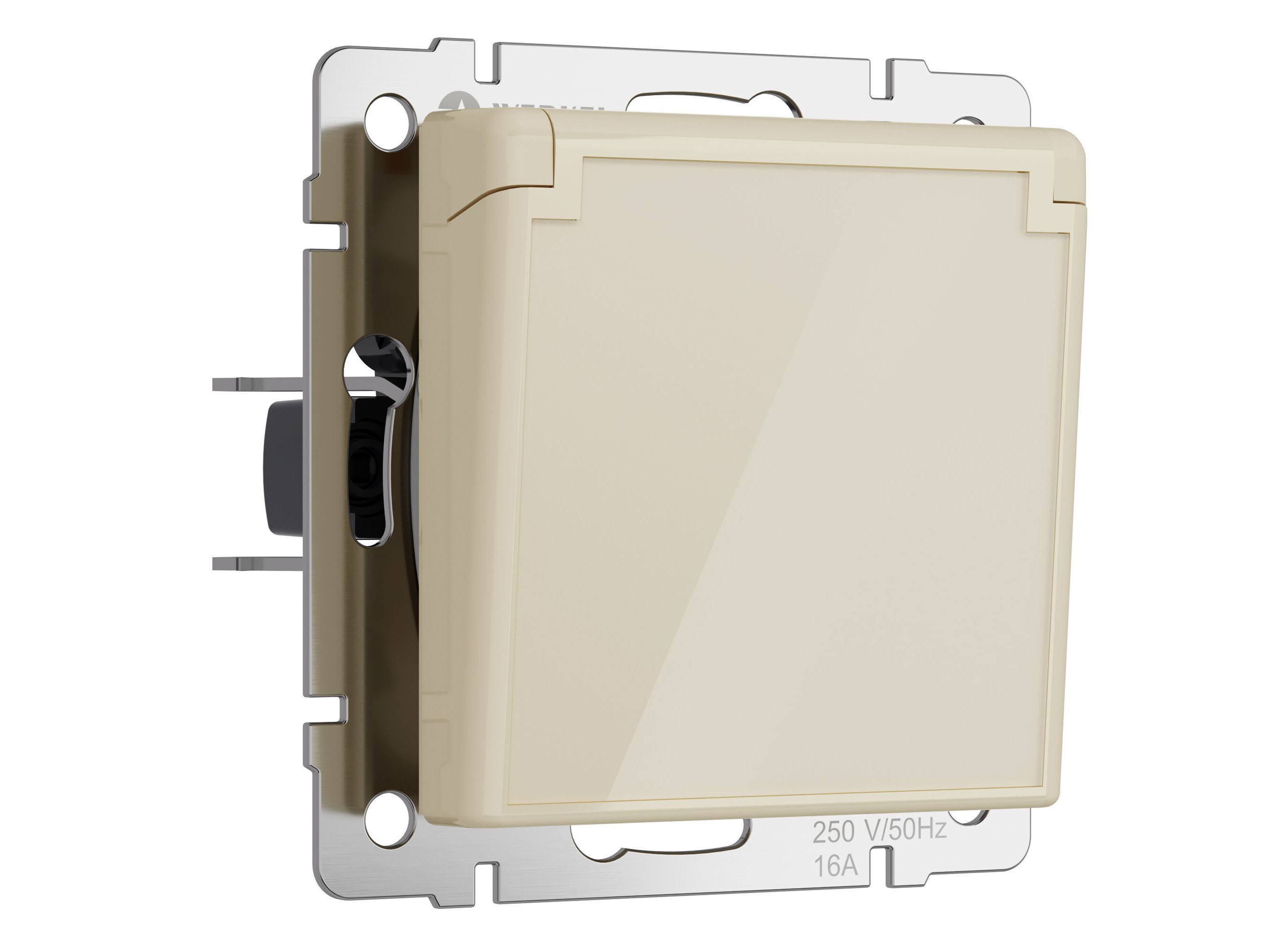 Розетка влагозащ. с зазем. с защит. крышкой и шторками (айвори акрил) W1171243