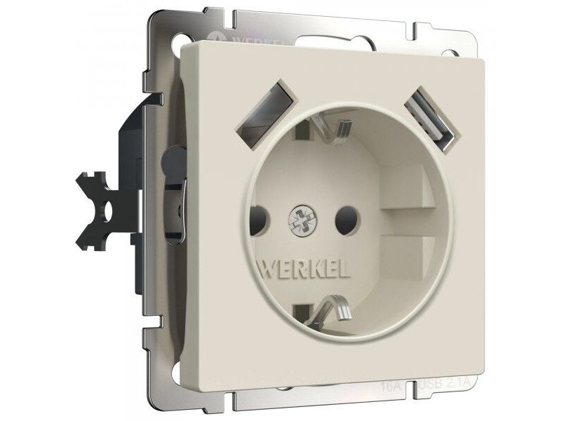 Розетка с заземлением, шторками и USBх2 (айвори матовый) W1171562