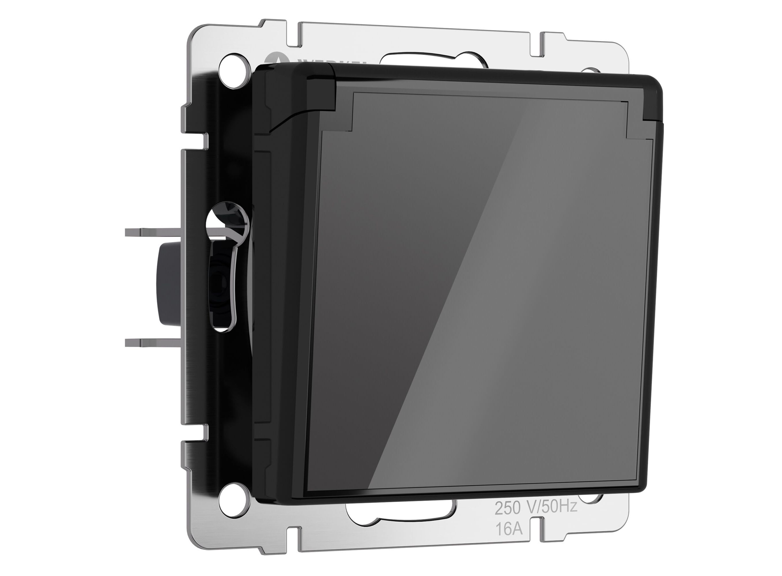 Розетка влагозащ. с зазем. с защит. крышкой и шторками (черный акрил) W1171248