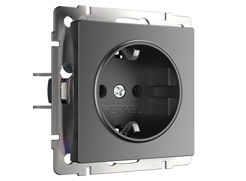 <p>Розетка с заземлением и шторками 220 В 16 A в цвете графит матовый является необходимым элементом в любом помещении и предназначена для подключения к электрической сети различных приборов. Такие электроустановочные изделия используются в квартирах, частных домах, коммерческих помещениях и устанавливаются в наиболее удобных местах для комфортного использования.</p> <p>Механизм с суппортом из нержавеющей стали устанавливаться в подрозетник и надежно фиксируется с помощью винтов и распорных лапок. Розетка оборудована защитными шторками, обеспечивающие дополнительную безопасность. Внешняя лицевая панель выполнена из высококачественного поликарбоната, устойчивого к высоким температурам.</p> <p>Встраиваемая розетка с заземлением совместима со всеми рамками из коллекций Werkel&trade;, характеризуется удобством использования и обеспечивает надежный контакт.</p>