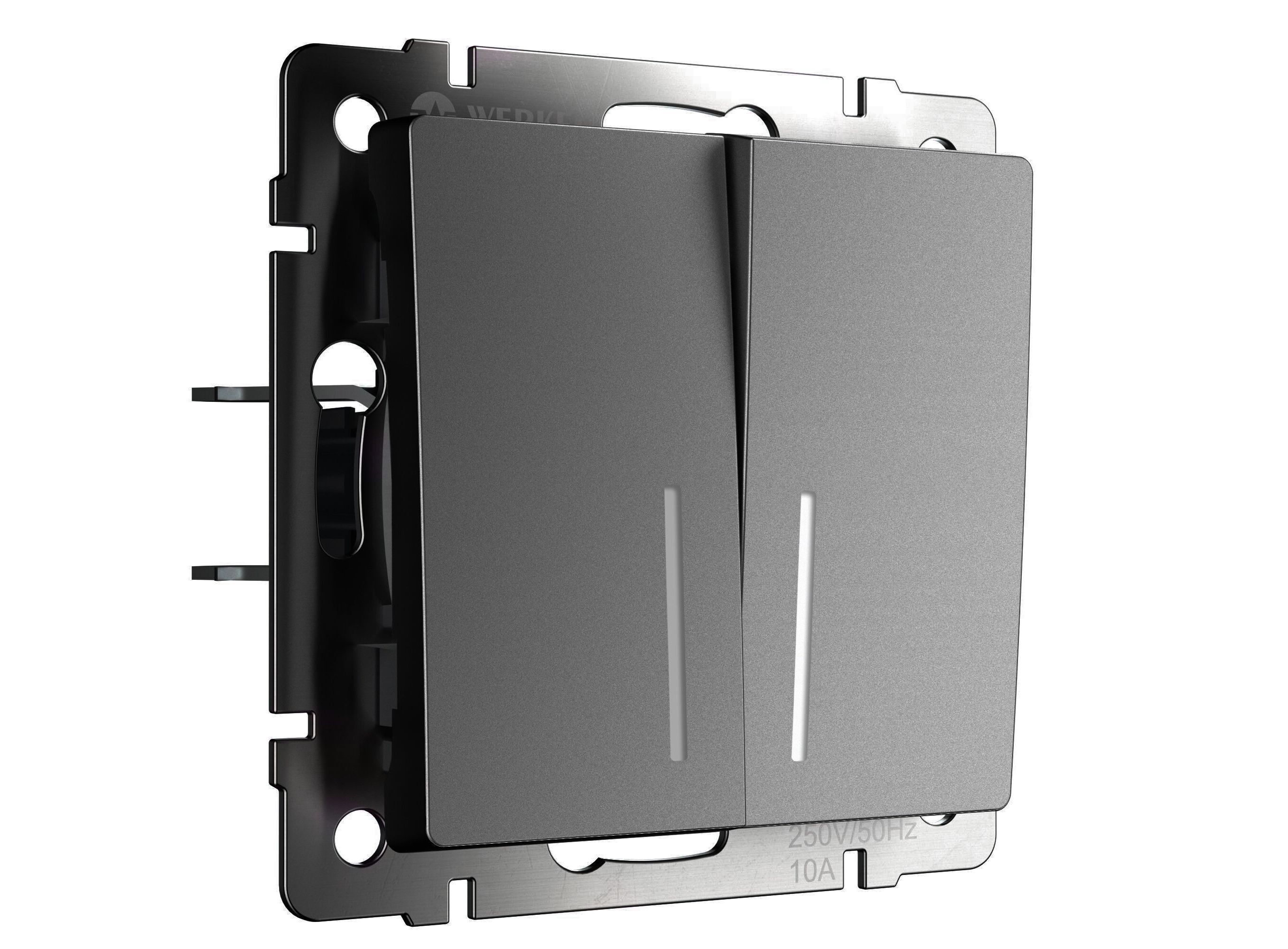 Выключатель двухклавишный проходной с подсветкой (графит матовый) W1122164