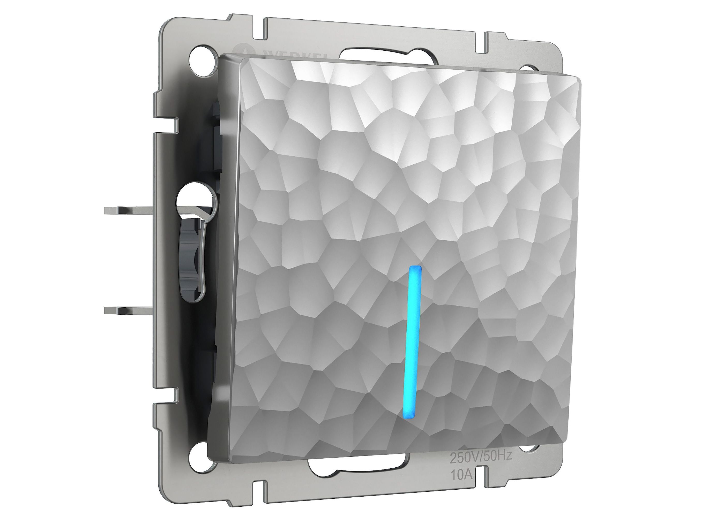 Выключатель одноклавишный проходной с подсветкой (Hammaer серебряный) W1212106