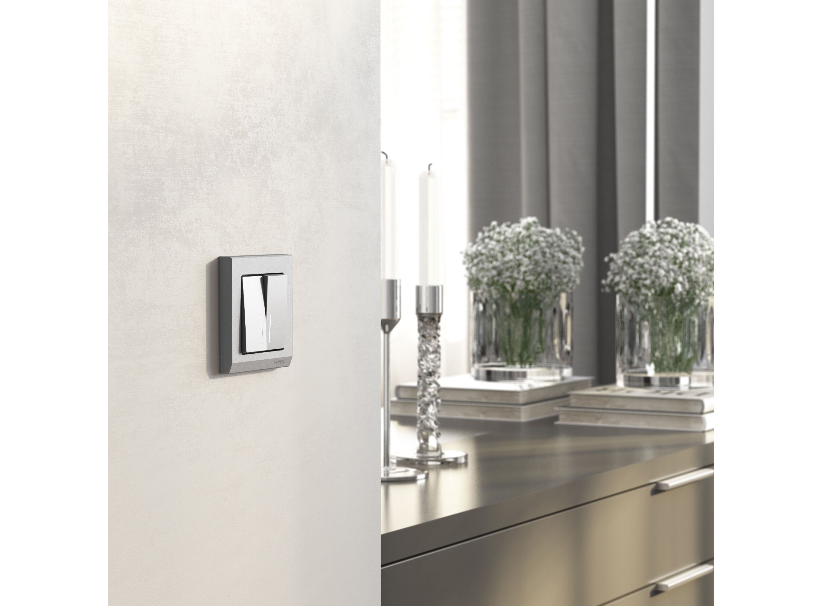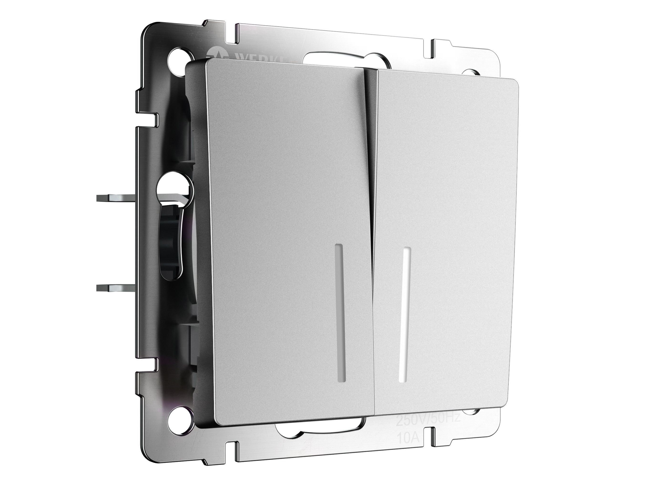 Выключатель двухклавишный проходной с подсветкой серебряный матовый W1122165