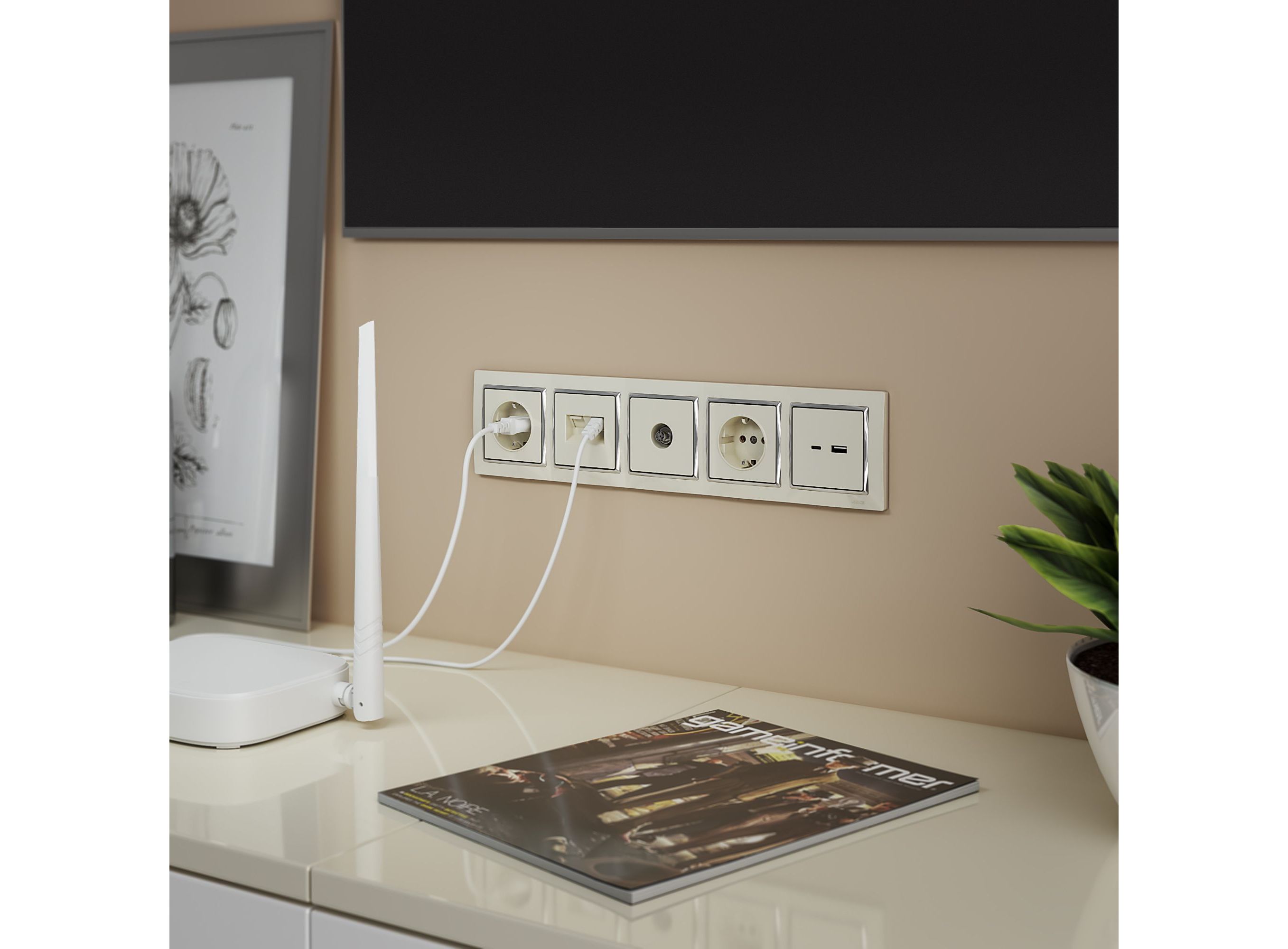 - Розетка RJ-45 + ТВ оконечная