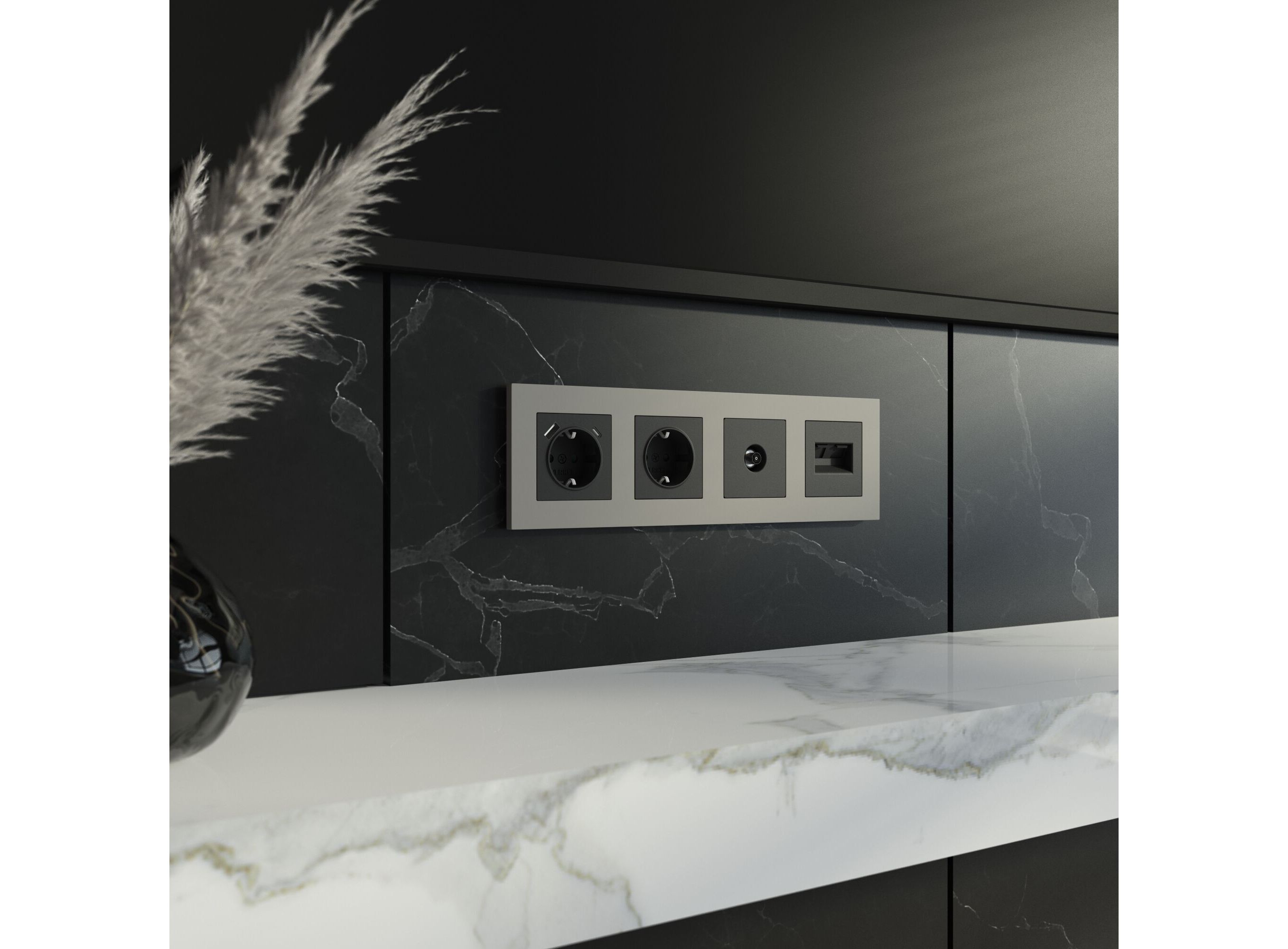 W0042917/ Рамка на 4 поста Slab (дымчатый софт) W0042917