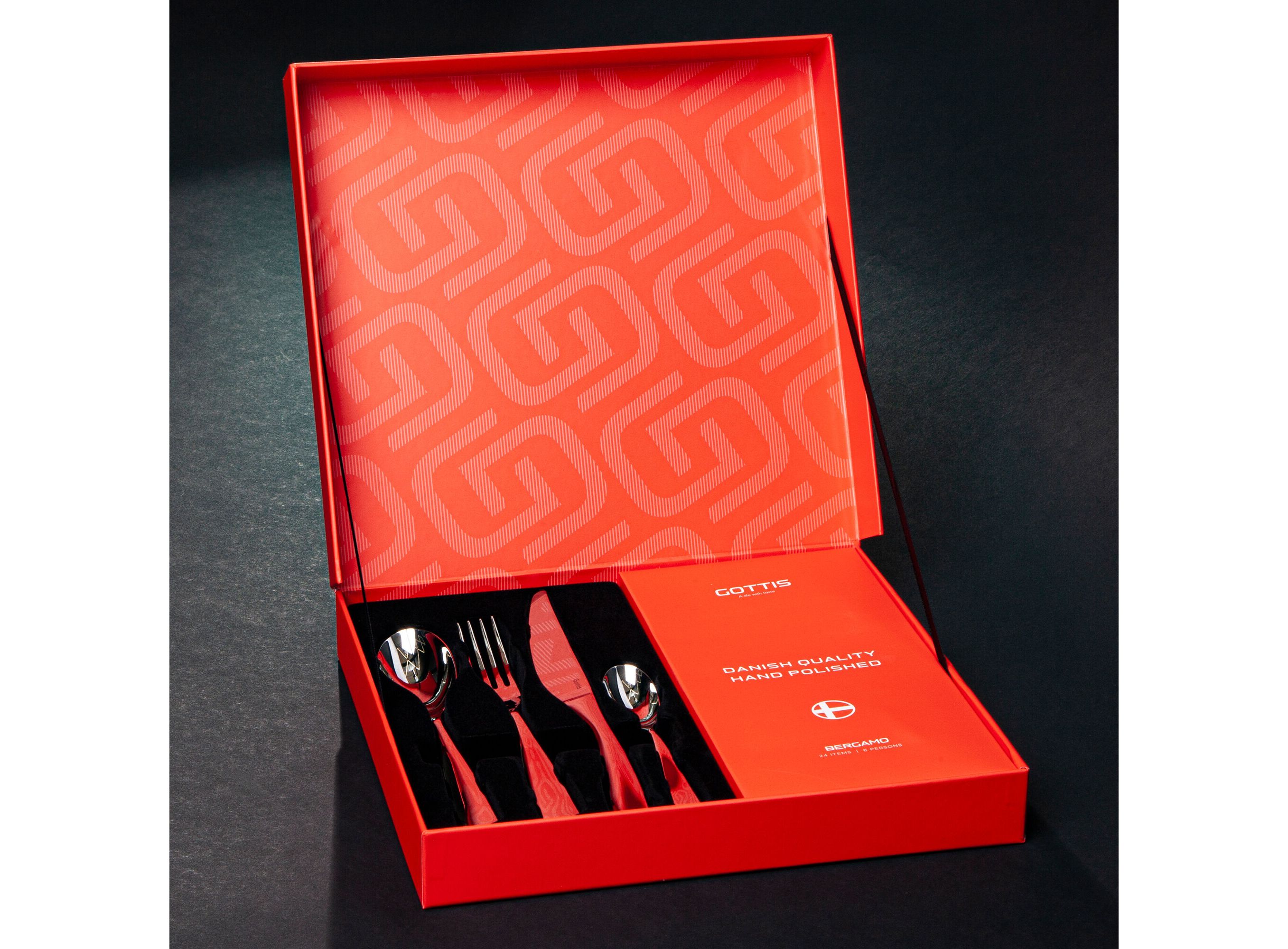 <p>Набор столовых приборов "Bergamo" 24 предмета, 6 персон арт. 02/24 изготовлен из нержавеющей стали и производится на современных высокотехнологичных фабриках под контролем датских технологов.</p>