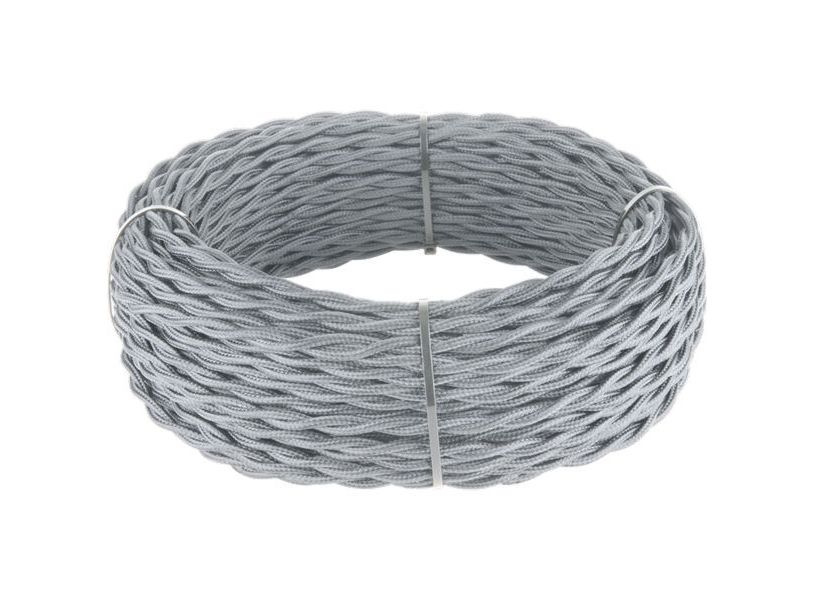 Ретро кабель витой 2х2,5 серый 20 м. Многожильный медный провод обеспечивает гибкость кабеля и его высокие электротехнические характеристики. Наружная оплетка кабеля имитирует натуральный шелк.