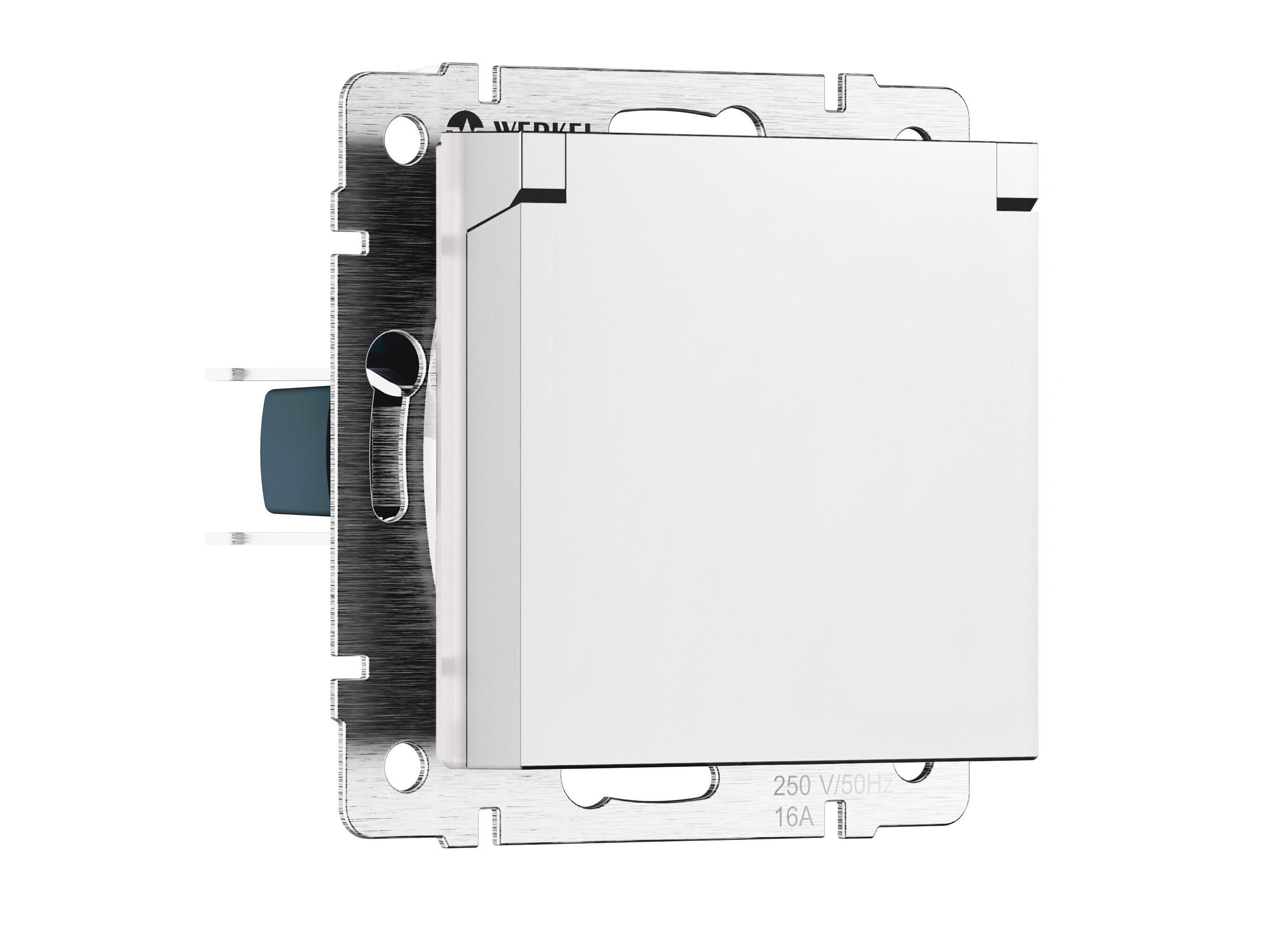 Встраиваемая розетка с заземлением совместима со всеми рамками из коллекций Werkel™, характеризуется удобством использования и обеспечивает надежный контакт.